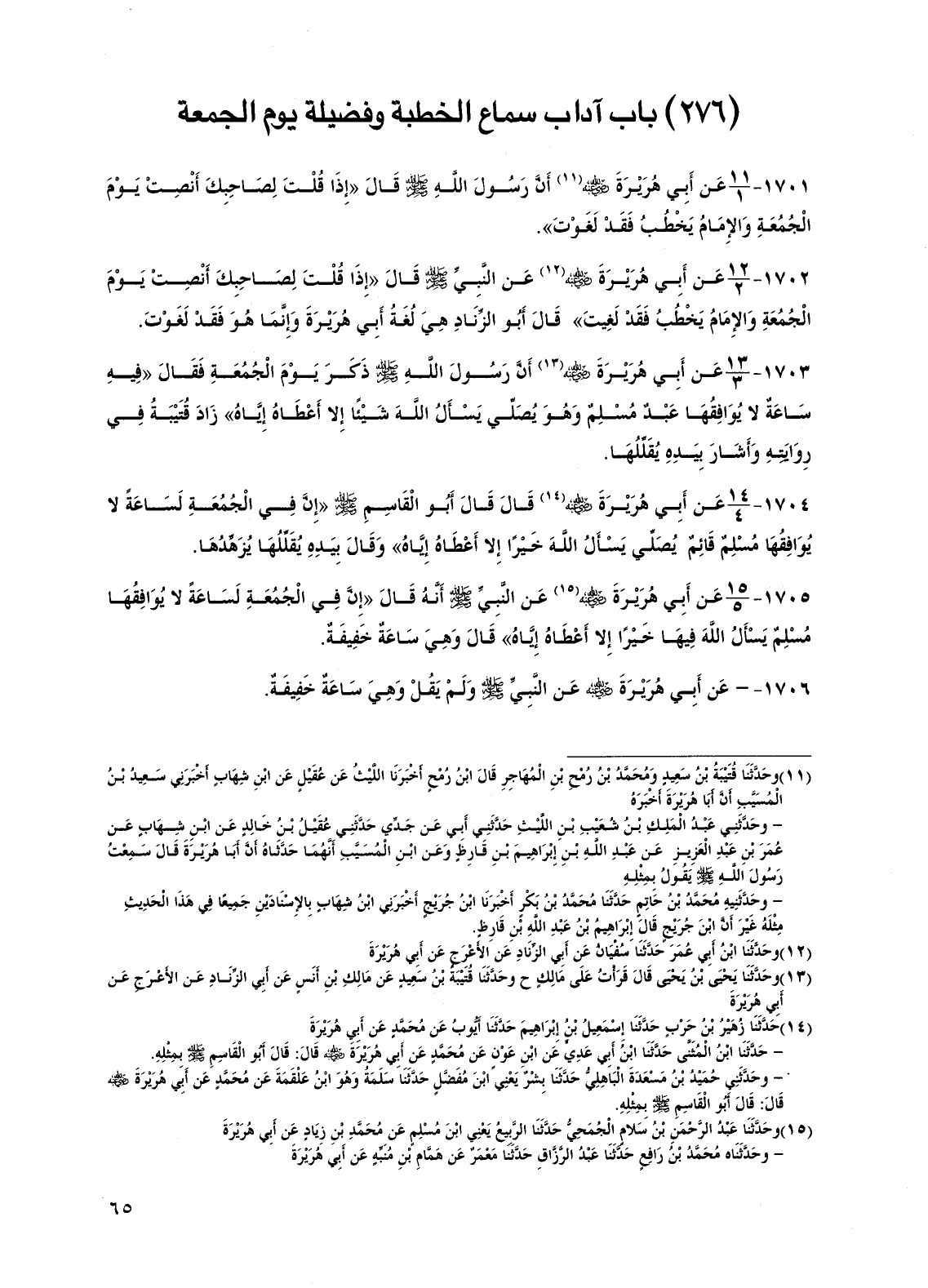 (276) باب آداب سماع الخطبة وفضيلة يوم الجمعة