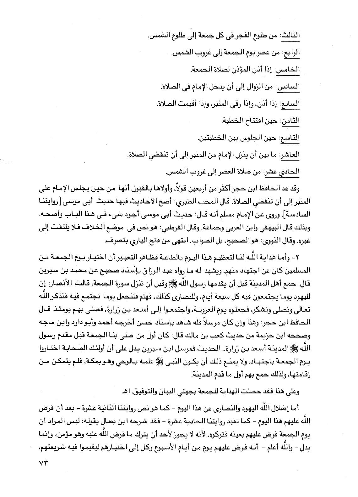 2 - وأما هداية الله لنا لتعظيم هذا اليوم بالطاعة فظاهر التعبير أن اختيار يوم الجمعة من المسلمين كان عن اجتهاد منهم، ويشهد له ما رواه عبد الرزاق بإسناد صحيح عن محمد بن سيرين قال: جمع أهل المدينة قبل أن يقدمها رسول الله صلى الله عليه وسلم وقبل أن تنزل سورة الجمعة، قالت الأنصار: إن لليهود يوماً يجتمعون فيه كل سبعة أيام، وللنصارى كذلك، فهلم فلنجعل يوماً نجتمع فيه فنذكر الله تعالى ونصلي ونشكر، فجعلوه يوم العروبة، واجتمعوا إلى أسعد بن زرارة، فصلى بهم يومئذ. قال الحافظ ابن حجر: وهذا وإن كان مرسلاً فله شاهد بإسناد حسن أخرجه أحمد وأبو داود وابن ماجه وصححه ابن خزيمة من حديث كعب بن مالك قال: كان أول من صلى بنا الجمعة قبل مقدم رسول الله صلى الله عليه وسلم المدينة أسعد بن زرارة. الحديث فمرسل ابن سيرين يدل على أن أولئك الصحابة اختاروا يوم الجمعة باجتهاد. ولا يمنع ذلك أن يكون النبي صلى الله عليه وسلم علمه بالوحي وهو بمكة، فلم يتمكن من إقامتها، ولذلك جمع بهم أول ما قدم المدينة.