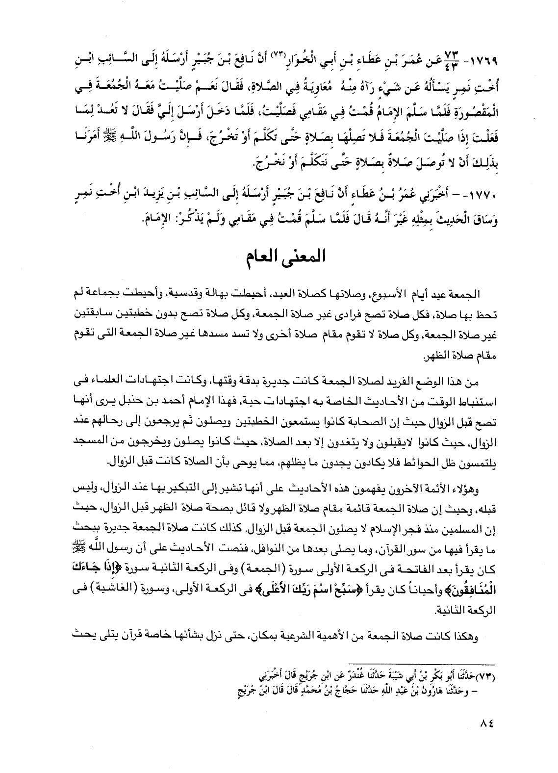 وهؤلاء الأئمة الآخرون يفهمون هذه الأحاديث على أنها تشير إلى التبكير بها عند الزوال، وليس قبله، وحيث إن صلاة الجمعة قائمة مقام صلاة الظهر ولا قائل بصحة صلاة الظهر قبل الزوال، حيث إن المسلمين منذ فجر الإسلام لا يصلون الجمعة قبل الزوال. كذلك كانت صلاة الجمعة جديرة ببحث ما يقرأ فيها من سور القرآن، وما يصلى بعدها من النوافل، فنصت الأحاديث على أن رسول الله صلى الله عليه وسلم كان يقرأ بعد الفاتحة في الركعة الأولى سورة (الجمعة) وفي الركعة الثانية سورة (إذا جاءك المنافقون) وأحياناً كان يقرأ (سبح اسم ربك الأعلى) في الركعة الأولى، وسورة (الغاشية) في الركعة الثانية.