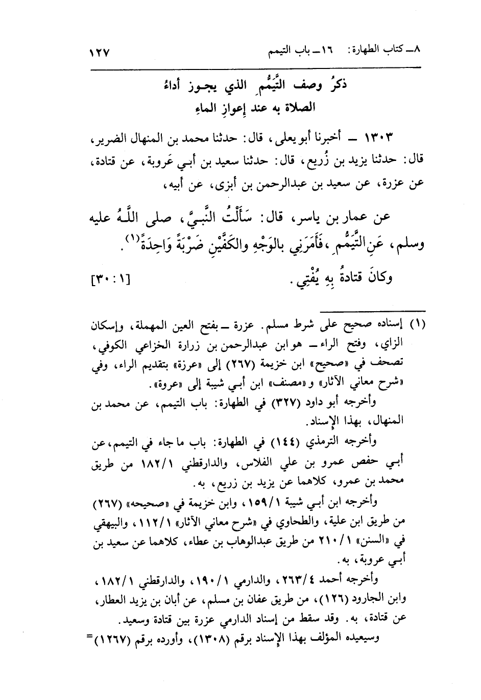 وأخرجه الترمذي [144] في الطهارة: باب ما جاء في التيمم، عن أبي حفص عمرو بن علي الفلاس، والدارقطني 1/182 من طريق محمد بن عمرو، كلاهما عن يزيد بن زريع، به.