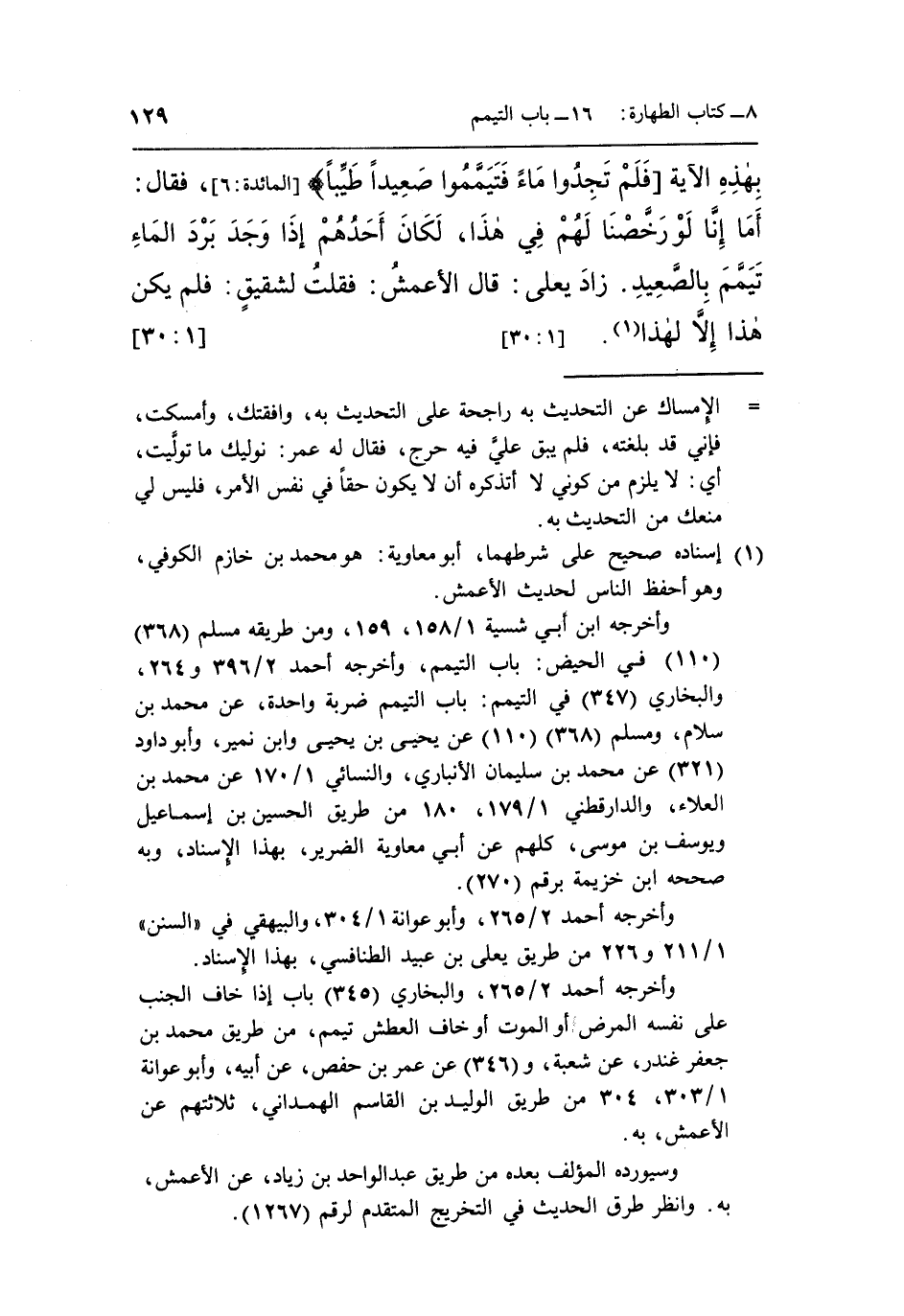وأخرجه ابن أبي شسية 1/158، 159، ومن طريقه مسلم [368] [110] في الحيض: باب التيمم، وأخرجه أحمد 2/396و264، والبخاري [347] في التيمم: باب التيمم ضربة واحدة، عن محمد بن سلام، ومسلم [368] [110] عن يحيى بن يحيى وابن نمير، وأبو داود [321] عن محمد بن سليمان الأنباري، والنسائي 1/170عن محمد بن العلاء، والدارقطني 1/179، 180 من طريق الحسين بن إسماعيل ويوسف بن موسى، كلهم عن أبي معاوية الضرير، بهذا الإسناد، وبه صححه ابن خزيمة برقم [270] .