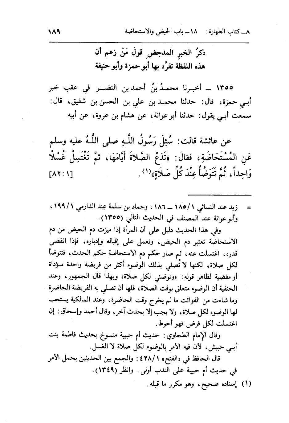 = زيد عند النسائي 1/185-186، وحماد بن سلمة عند الدارمي 1/199، وأبو عوانة عند المصنف في الحديث التالي [1355] ، وأبو حنيفة الإمام عند الطحاوي 1/102.