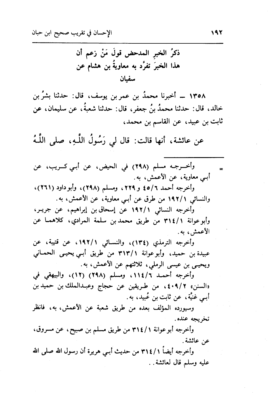 ذِكْرُ الْخَبَرِ الْمُدْحِضِ قَوْلَ مَنْ زَعَمَ أَنَّ هَذَا الْخَبَرَ تَفَرَّدَ بِهِ مُعَاوِيَةُ بْنُ هِشَامٍ عَنْ سُفْيَانَ