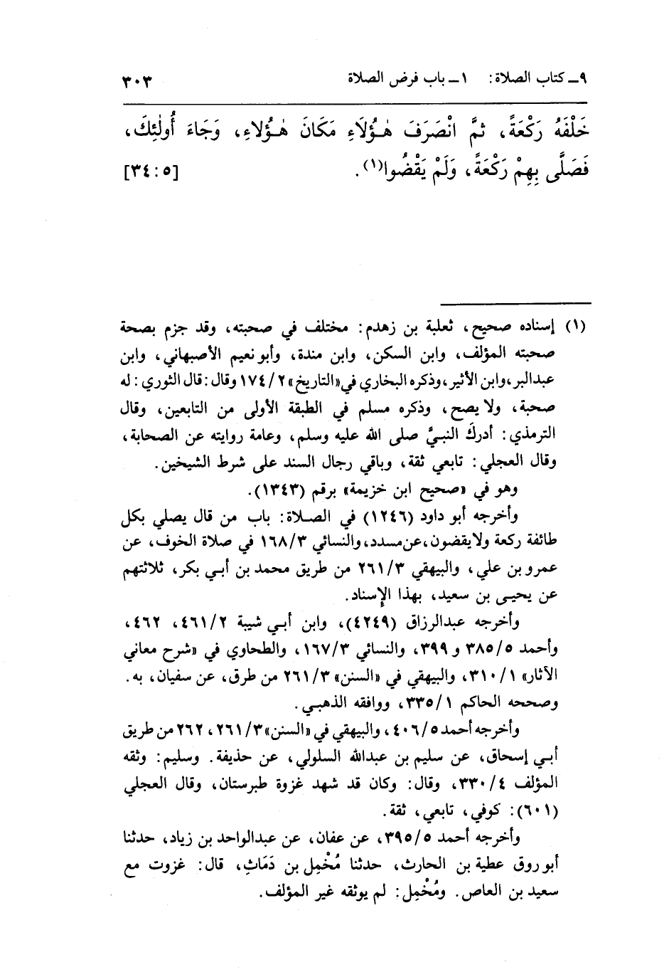 خَلْفَهُ رَكْعَةً ثُمَّ انْصَرَفَ هَؤُلَاءِ مَكَانَ هَؤُلَاءِ وَجَاءَ أُولَئِكَ فَصَلَّى بِهِمْ رَكْعَةً وَلَمْ يَقْضُوا1.