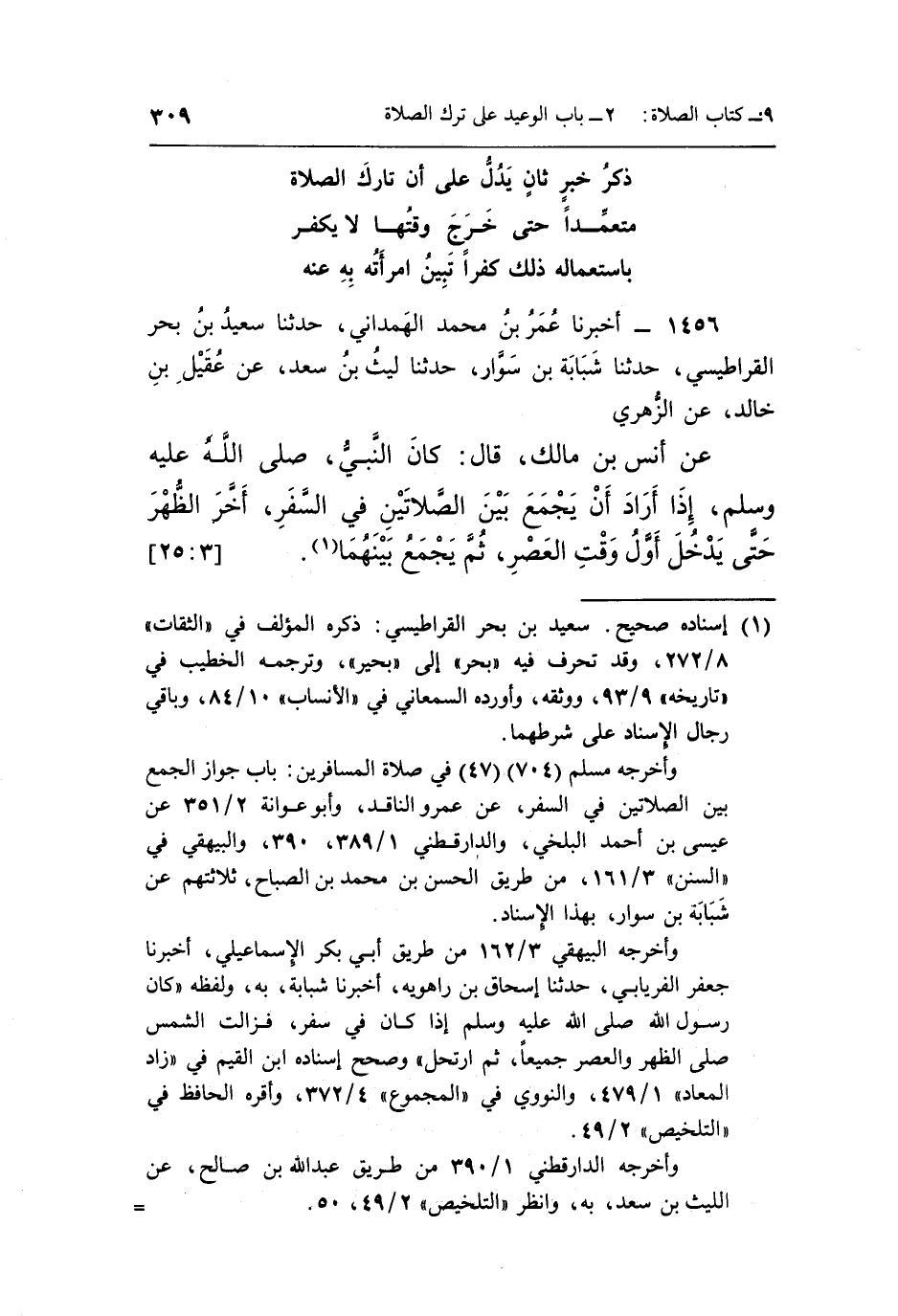 1456 - أَخْبَرَنَا عُمَرُ بْنُ مُحَمَّدٍ الْهَمْدَانِيُّ حَدَّثَنَا سَعِيدُ بْنُ بَحْرٍ الْقَرَاطِيسِيُّ حَدَّثَنَا شَبَابَةُ بْنُ سَوَّارٍ حَدَّثَنَا لَيْثُ بْنُ سَعْدٍ عَنْ عَقِيلِ بْنِ خَالِدٍ عَنِ الزُّهْرِيِّ