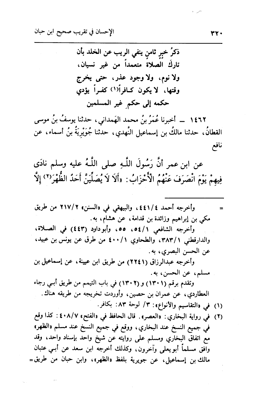 1462 - أَخْبَرَنَا عُمَرُ بْنُ مُحَمَّدٍ الْهَمْدَانِيُّ حَدَّثَنَا يُوسُفُ بْنُ مُوسَى الْقَطَّانُ حَدَّثَنَا مَالِكُ بْنُ إِسْمَاعِيلَ النَّهْدِيُّ حَدَّثَنَا جُوَيْرِيَةُ بن أسماء عن نافع
