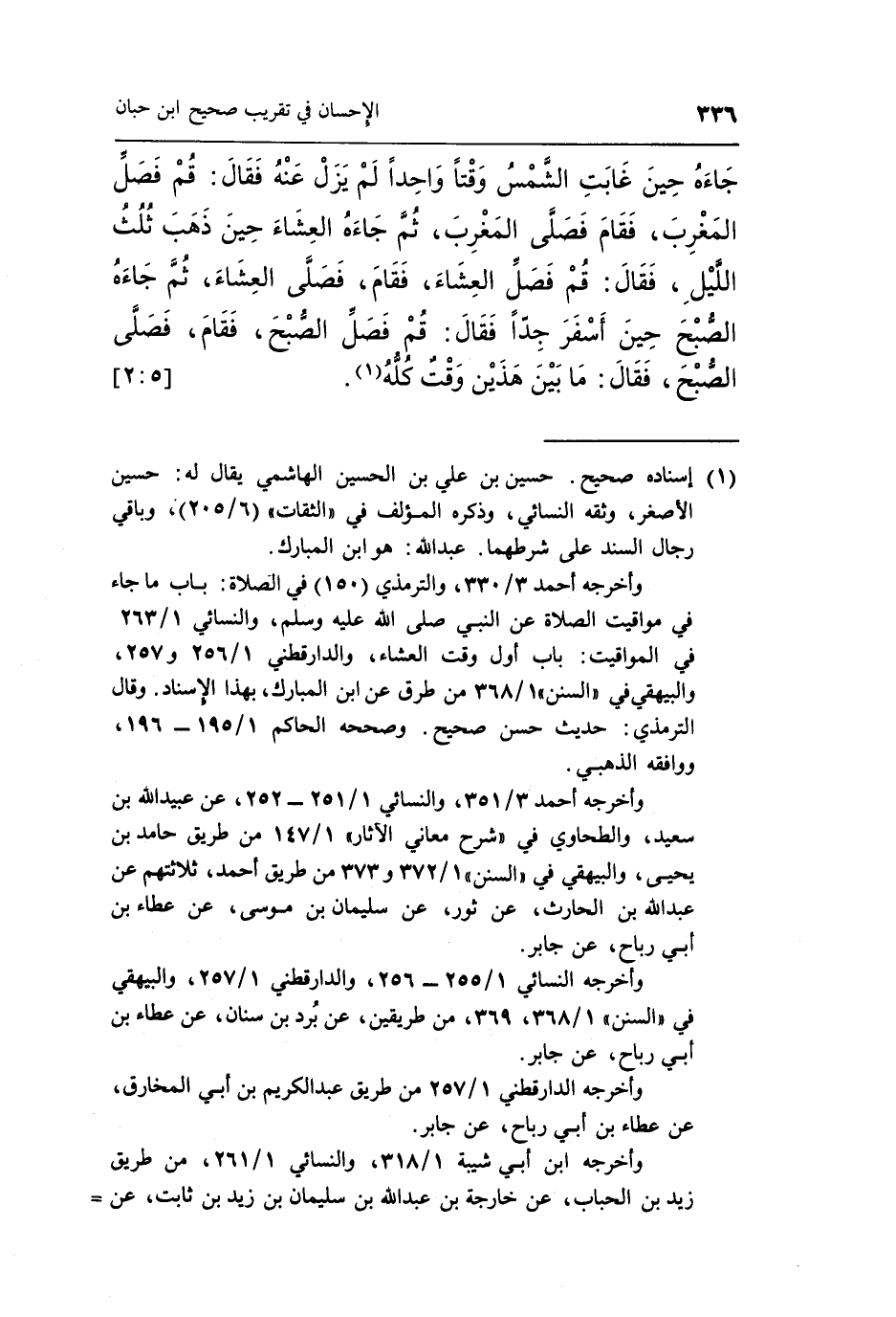 1 إسناده صحيح. حسين بن علي بن الحسين الهاشمي يقال له: حسين الأصغر، وثقه النسائي، وذكره المؤلف في "الثقات" [6/205] ، وباقي رجال السند على شرطهما. عبد الله: هو ابن المبارك.