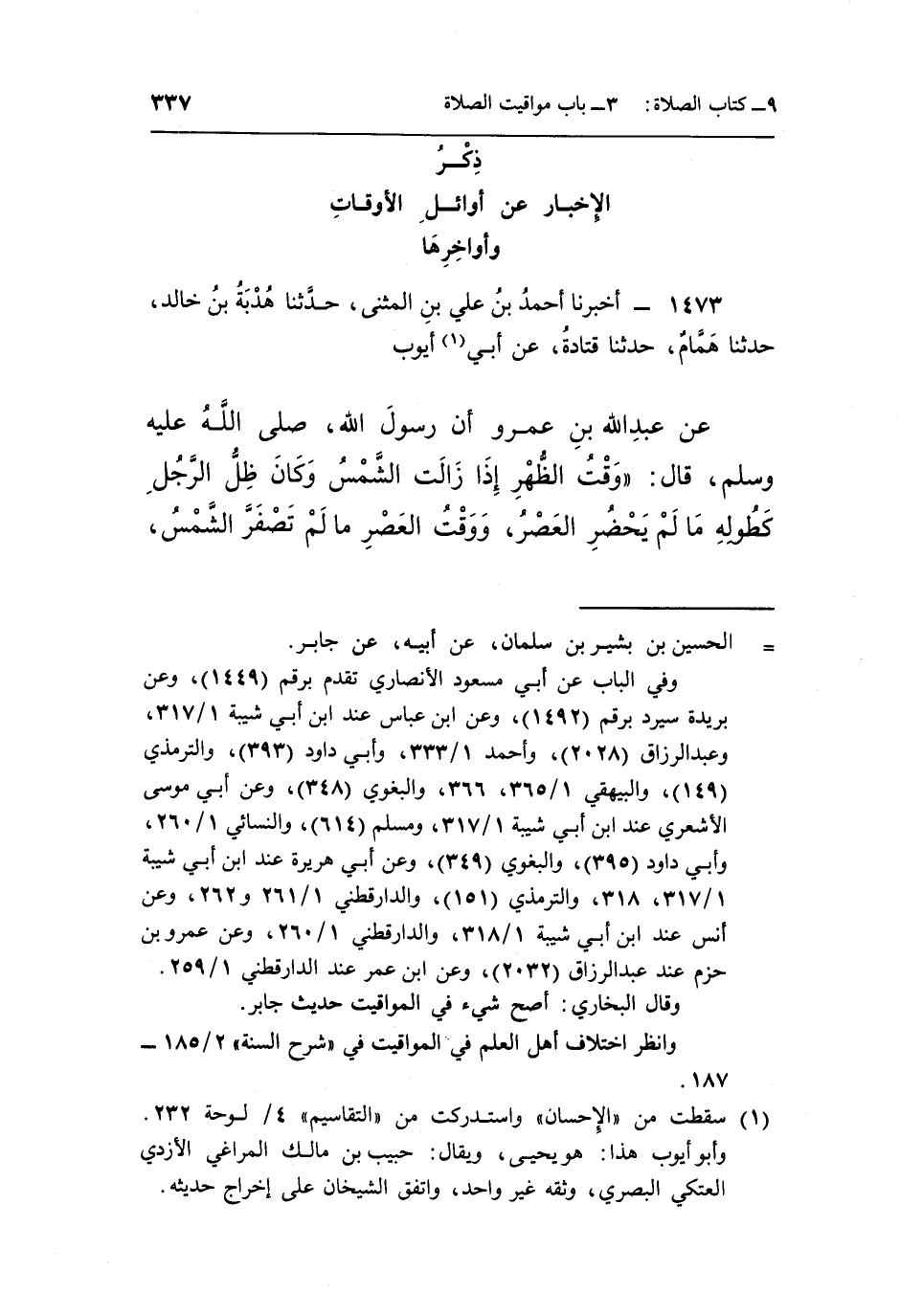 1473- أَخْبَرَنَا أَحْمَدُ بْنُ عَلِيِّ بْنِ الْمُثَنَّى حَدَّثَنَا هُدْبَةُ بْنُ خَالِدٍ حَدَّثَنَا هَمَّامٌ حَدَّثَنَا قَتَادَةُ عَنْ أَبِي1 أَيُّوبَ