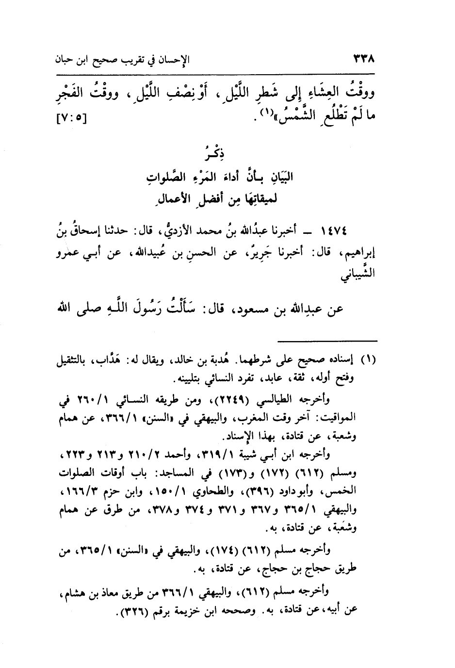 ذِكْرُ الْبَيَانِ بِأَنَّ أَدَاءَ الْمَرْءِ الصَّلَوَاتِ لِمِيقَاتِهَا مِنْ أَفْضَلِ الْأَعْمَالِ