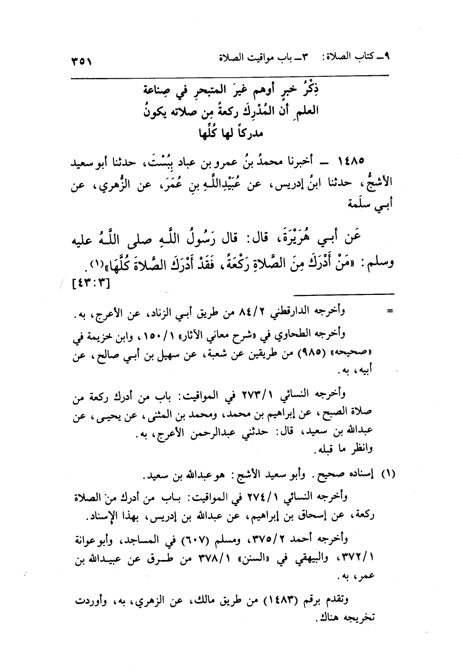 1485 - أَخْبَرَنَا مُحَمَّدُ بْنُ عَمْرِو بْنِ عَبَّادٍ بِبُسْتَ حَدَّثَنَا أَبُو سَعِيدٍ الْأَشَجُّ حدثنا بن إِدْرِيسَ عَنْ عُبَيْدِ اللَّهِ بْنِ عُمَرَ عَنِ الزُّهْرِيِّ عَنْ أَبِي سَلَمَةَ