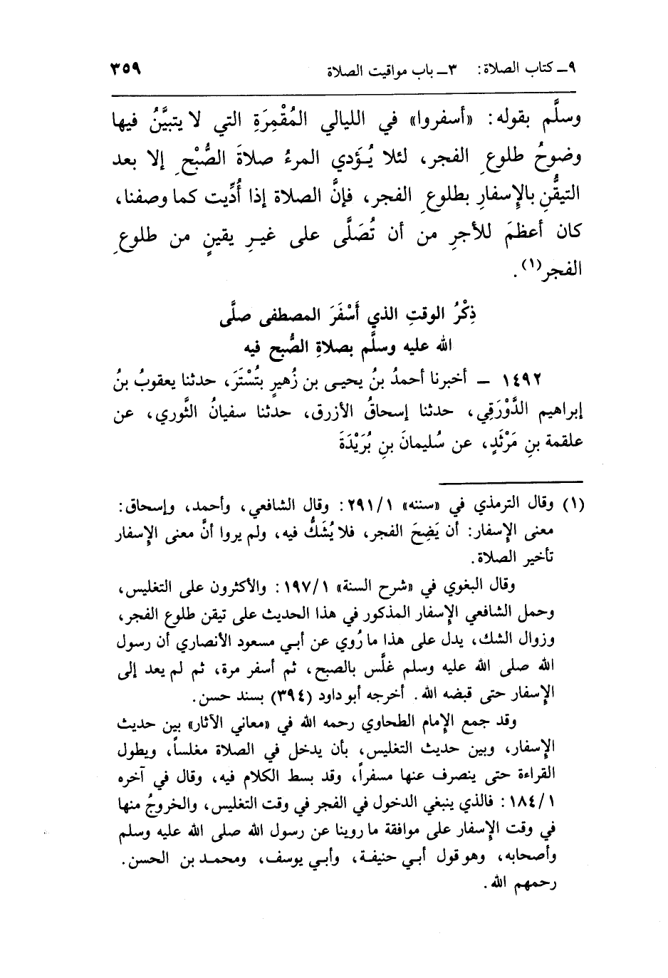 1 وقال الترمذي في "سننه" 1/291: وقال الشافعي، وأحمد، وإسحاق: معنى الإسفار: أن يضح الفجر، فلا يشك فيه، ولم يروا أن معنى الإسفار تأخير الصلاة.