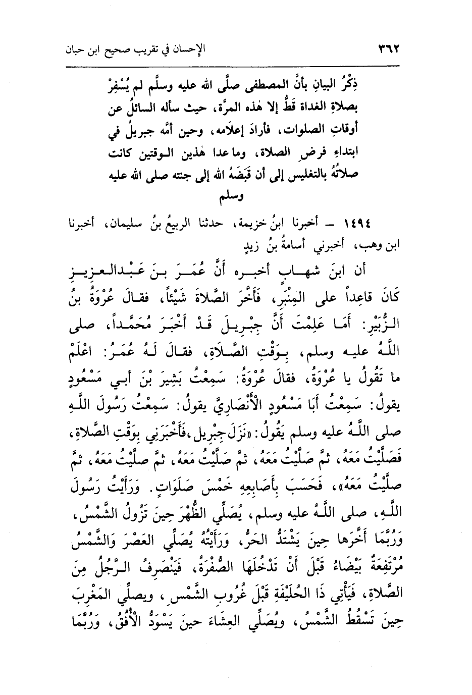 1494 - أَخْبَرَنَا بن خزيمة حدثنا الربيع بن سليمان أخبرنا بن وهب أخبرني أسامة بن زيد