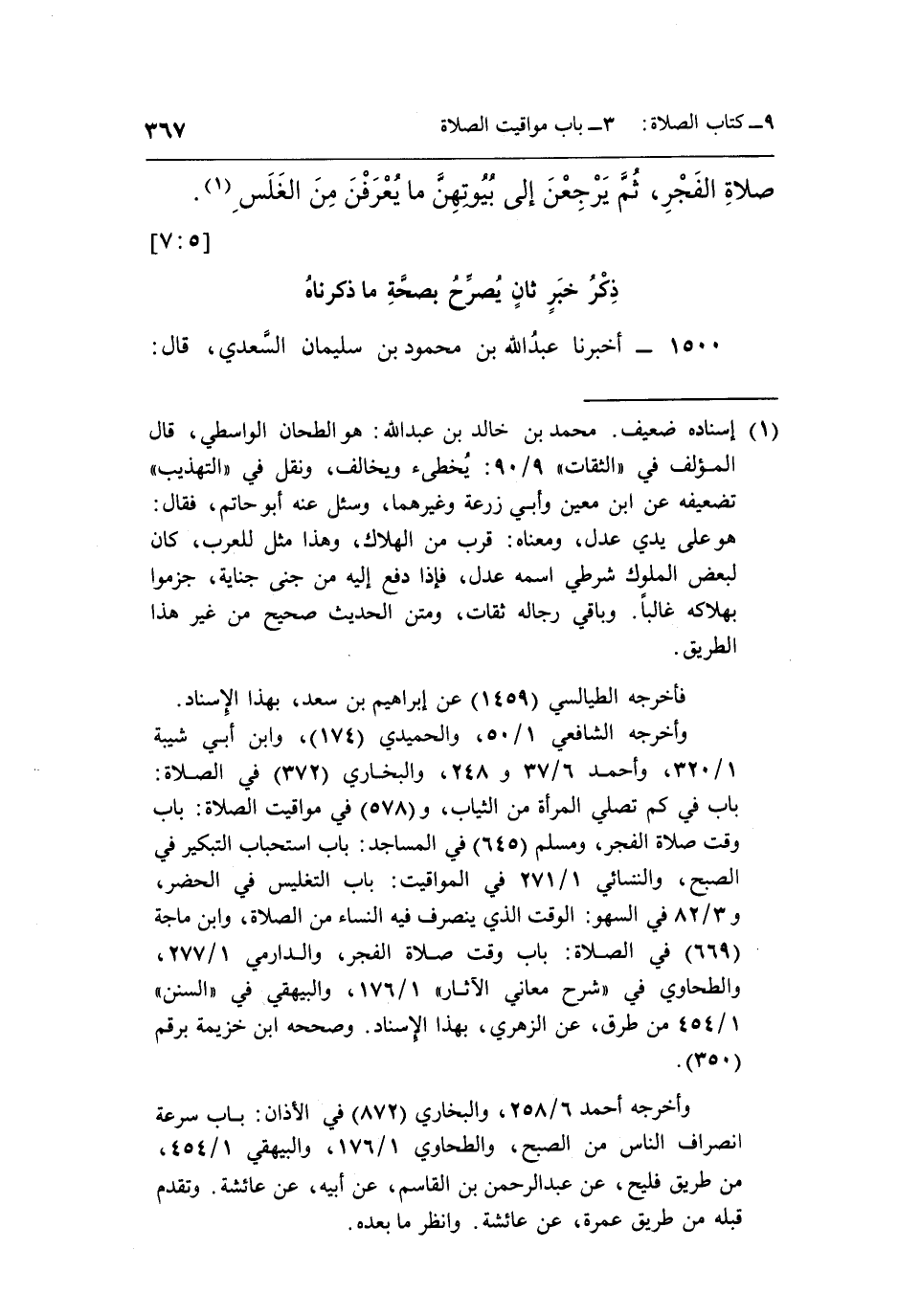 وأخرجه الشافعي 1/50، والحميدي [174] ، وابن أبي شيبة 1/320،وأحمد 6/37و248، والبخاري [372] في الصلاة: باب في كم تصلي المرأة من الثياب، و [578] في مواقيت الصلاة: باب وقت صلاة الفجر، ومسلم [645] في المساجد: باب استحباب التبكير في الصبح، والنسائي 1/371 في المواقيت: باب التغليس في الحضر، و3/82 في السهو: الوقت الذي ينصرف فيه النساء من الصلاة، وابن ماجة [669] في الصلاة: باب وقت صلاة الفجر، والدارمي 1/277، والطحاوي في "شرح معاني الآثار" 1/176، والبيهقي في "السنن" 1/454 من طرق، عن الزهري، بهذا الإسناد. وصححه ابن خزيمة برقم [350] .