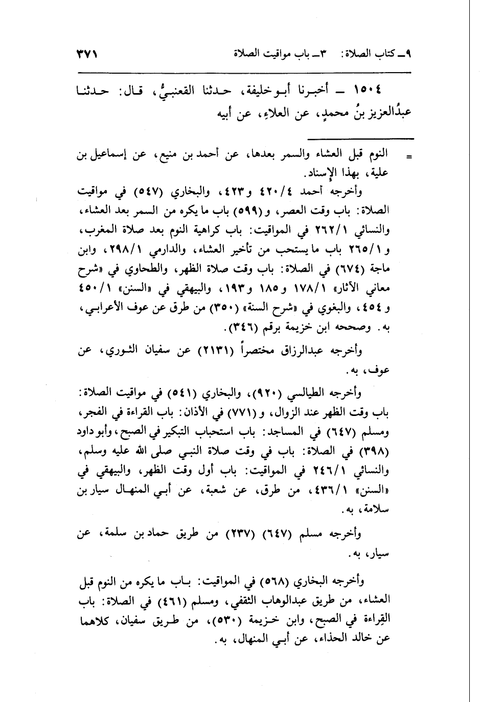= النوم قبل العشاء والسمر بعدها، عن أحمد بن منيع، عن إسماعيل بن علية، بهذا الإسناد.