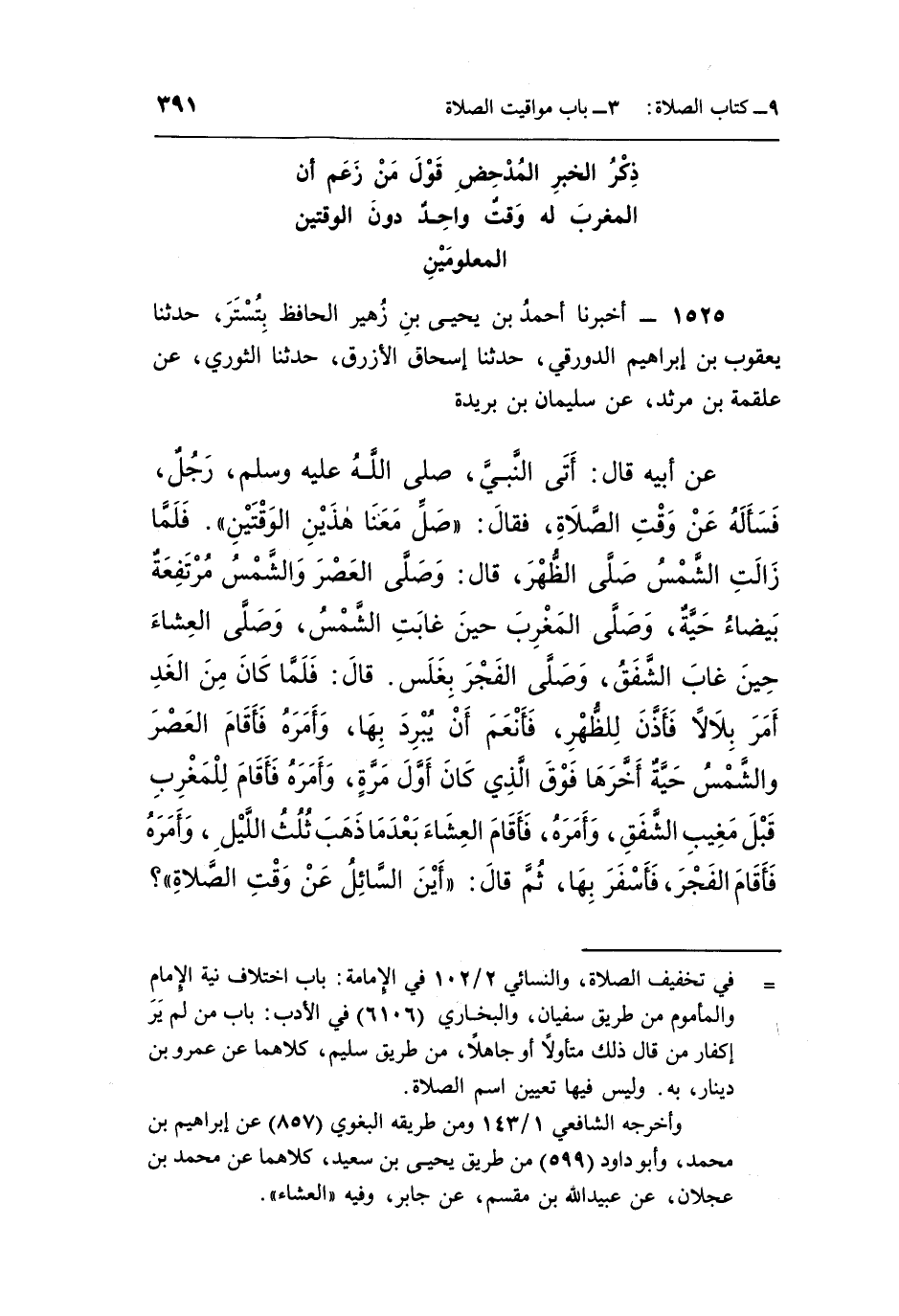 ذِكْرُ الْخَبَرِ الْمُدْحِضِ قَوْلَ مَنْ زَعَمَ أَنَّ الْمَغْرِبَ لَهُ وَقْتٌ وَاحِدٌ دُونَ الْوَقْتَيْنِ الْمَعْلُومَيْنِ