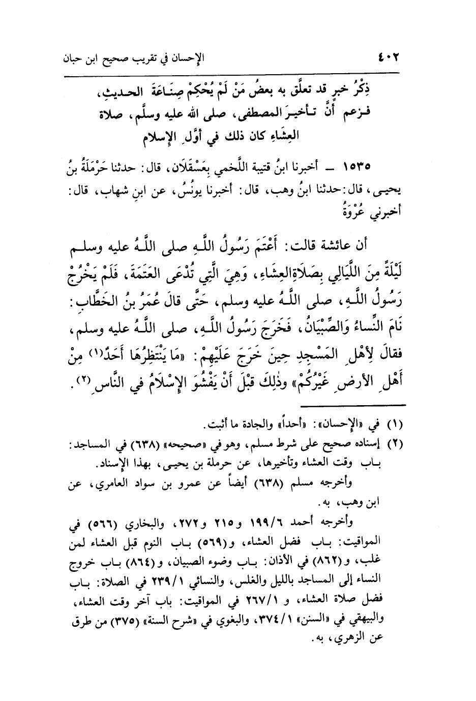 1535 - أخبرنا بن قُتَيْبَةَ اللَّخْمِيُّ بِعَسْقَلَانَ قَالَ حَدَّثَنَا حَرْمَلَةُ بْنُ يَحْيَى قَالَ حَدَّثَنَا بن وهب قال أخبرنا يونس عن بن شِهَابٍ قَالَ أَخْبَرَنِي عُرْوَةُ