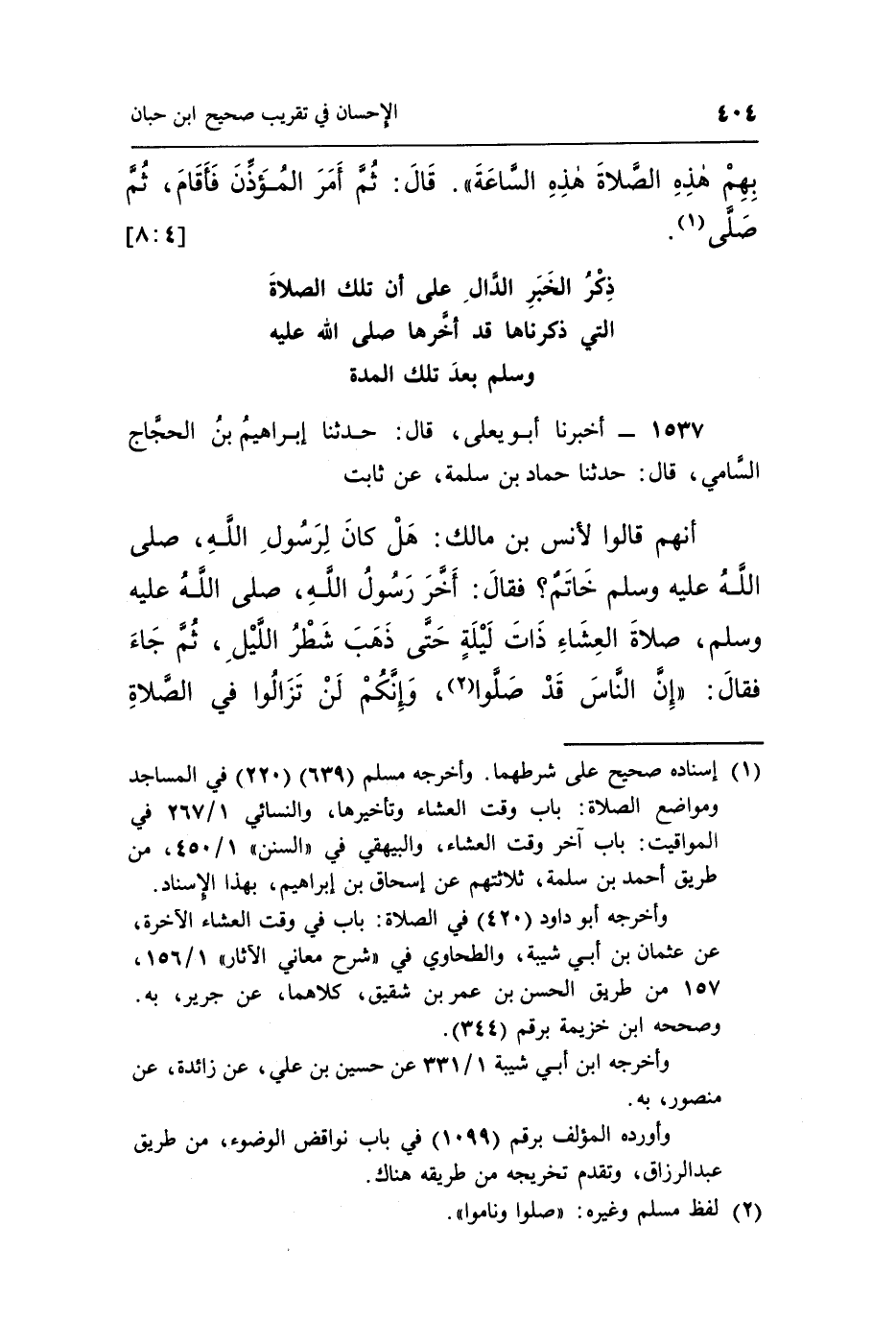 1537 - أَخْبَرَنَا أَبُو يَعْلَى قَالَ حَدَّثَنَا إِبْرَاهِيمُ بْنُ الْحَجَّاجِ السَّامِيُّ قَالَ حَدَّثَنَا حَمَّادُ بْنُ سَلَمَةَ عَنْ ثَابِتٍ