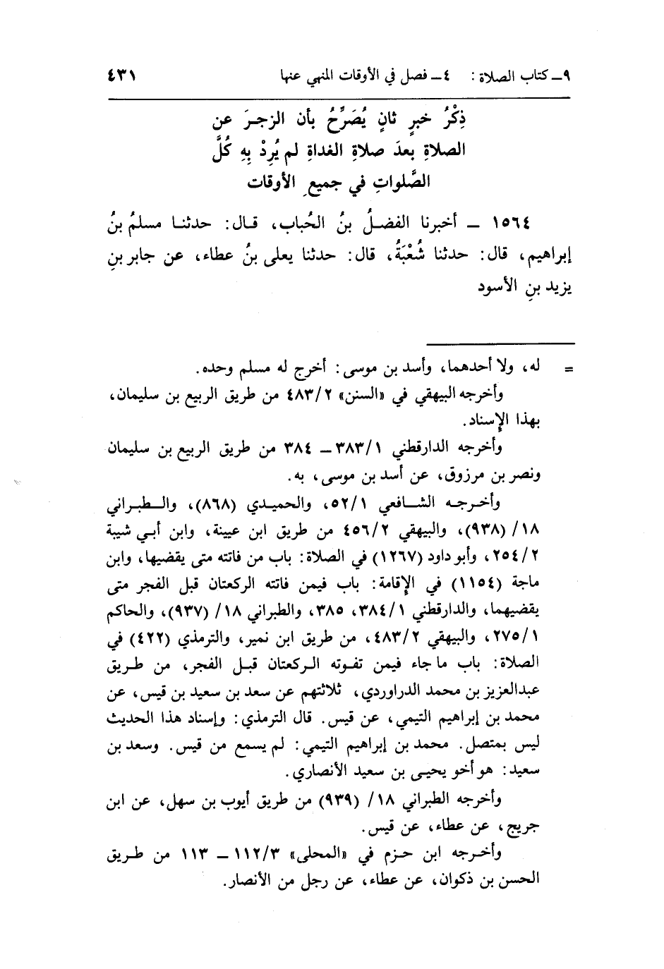 1564- أَخْبَرَنَا الْفَضْلُ بْنُ الْحُبَابِ قَالَ حَدَّثَنَا مُسْلِمُ بْنُ إِبْرَاهِيمَ قَالَ حَدَّثَنَا شُعْبَةُ قَالَ حَدَّثَنَا يَعْلَى بْنُ عَطَاءٍ عَنْ جَابِرِ بْنِ يَزِيدَ بْنِ الْأَسْوَدِ