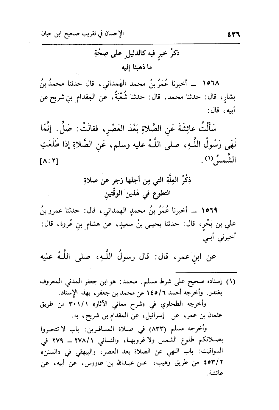 1569- أَخْبَرَنَا عُمَرُ بْنُ مُحَمَّدٍ الْهَمْدَانِيُّ قَالَ حَدَّثَنَا عَمْرُو بْنُ عَلِيِّ بْنِ بَحْرٍ قَالَ حَدَّثَنَا يَحْيَى بْنُ سَعِيدٍ عَنْ هِشَامِ بْنِ عُرْوَةَ قَالَ أَخْبَرَنِي أبي