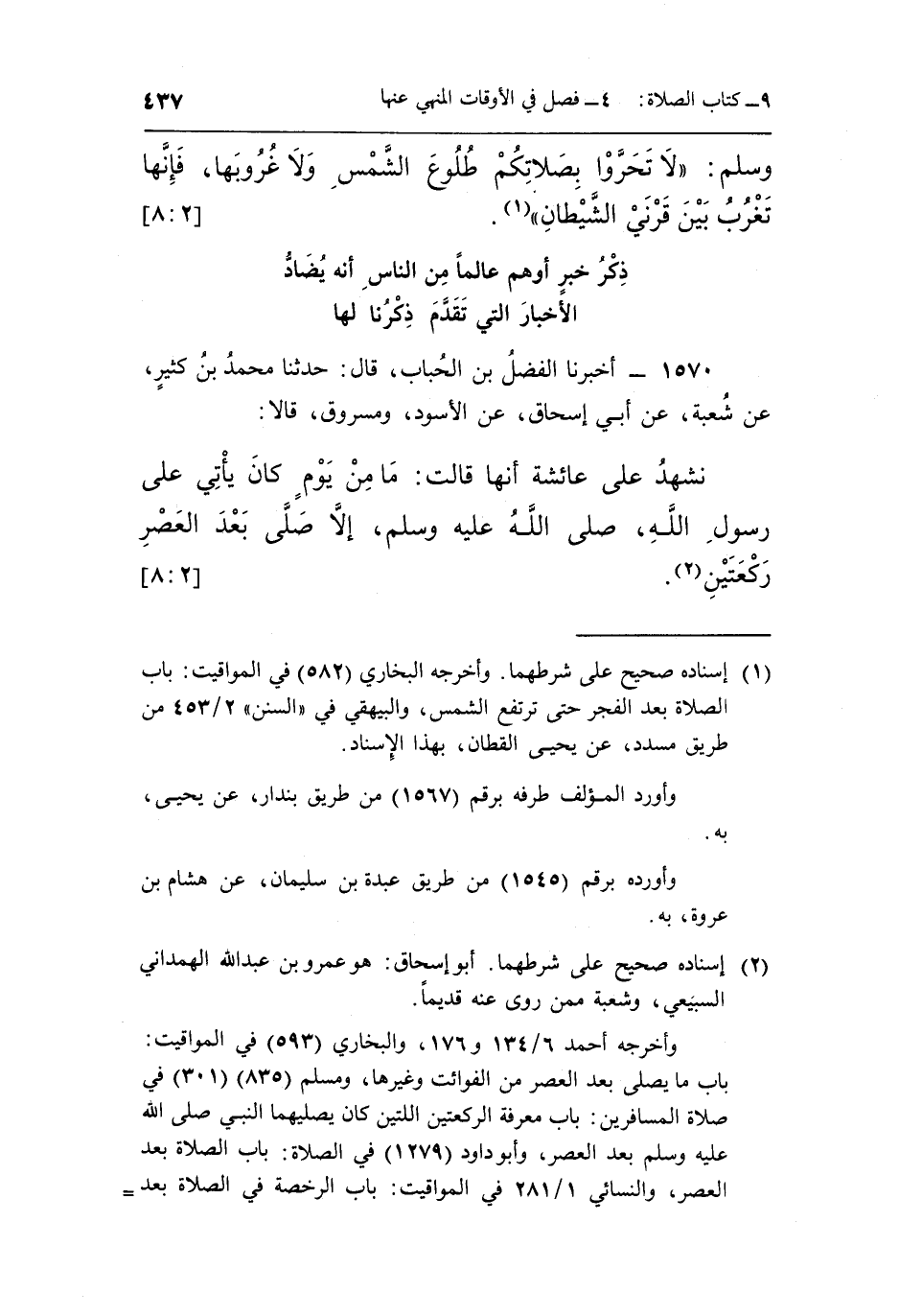 1570- أَخْبَرَنَا الْفَضْلُ بْنُ الْحُبَابِ قَالَ حَدَّثَنَا مُحَمَّدُ بْنُ كَثِيرٍ عَنْ شُعْبَةَ عَنْ أَبِي إِسْحَاقَ عَنِ الْأَسْوَدِ وَمَسْرُوقٍ قَالَا:
