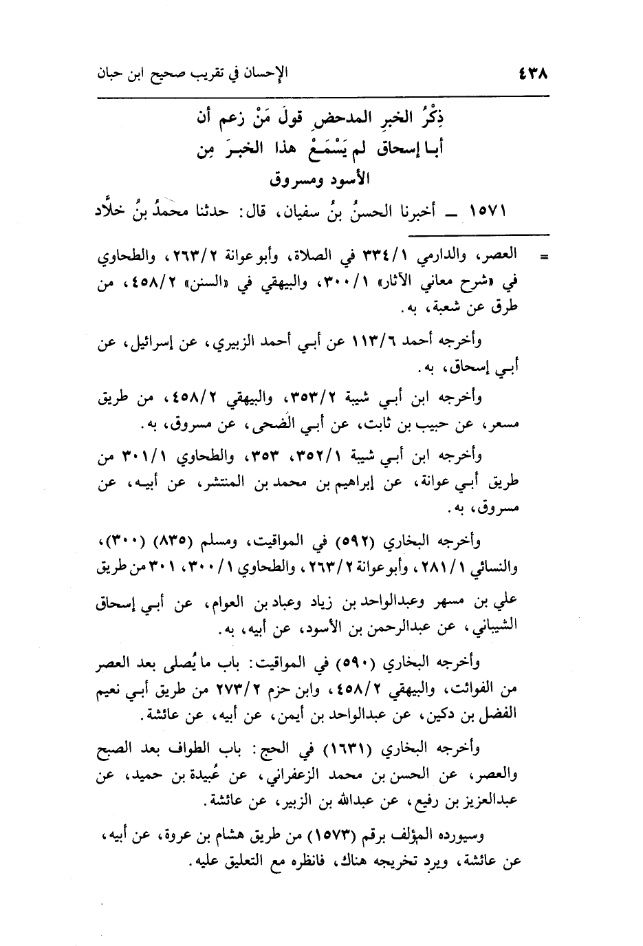 ذِكْرُ الْخَبَرِ الْمُدْحِضِ قَوْلَ مَنْ زَعَمَ أَنَّ أَبَا إِسْحَاقَ لَمْ يَسْمَعْ هَذَا الْخَبَرَ مِنَ الْأَسْوَدِ وَمَسْرُوقٍ