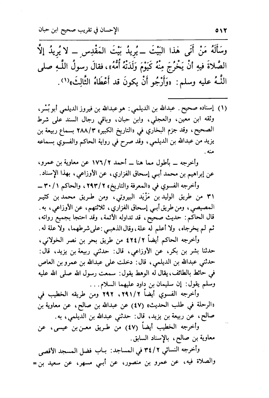 وأخرجه الحاكم أيضاً 2/424 من طريق بحر بن نصر الخولاني، حدثنا بشر بن بكر، عن الأوزاعي، قال: حدثني ربيعة بن يزيد، قال: حدثني عبد الله بن الديلمي، قال: دخلت على عبد الله بن عمرو بن العاص في حائط بالطائف، يقال له الوهط يقول: سمعت رسول الله صلى الله عليه وسلم يقول: "إن سليمان بن داود عليهما السلام ... "
