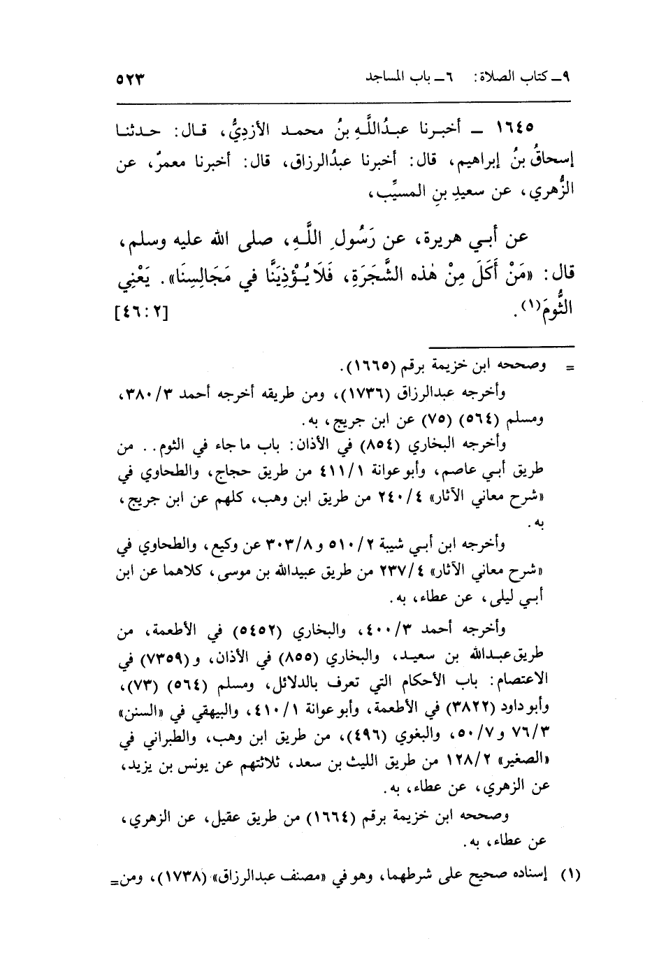 1 إسناده صحيح على شرطهما، وهو في "مصنف عبد الرزاق" [1738] ، ومن طريق عبد الرزاق أخرجه أحمد 2/266، ومسلم [563] في المساجد، والبيهقي 3/76، والبغوي [495] .