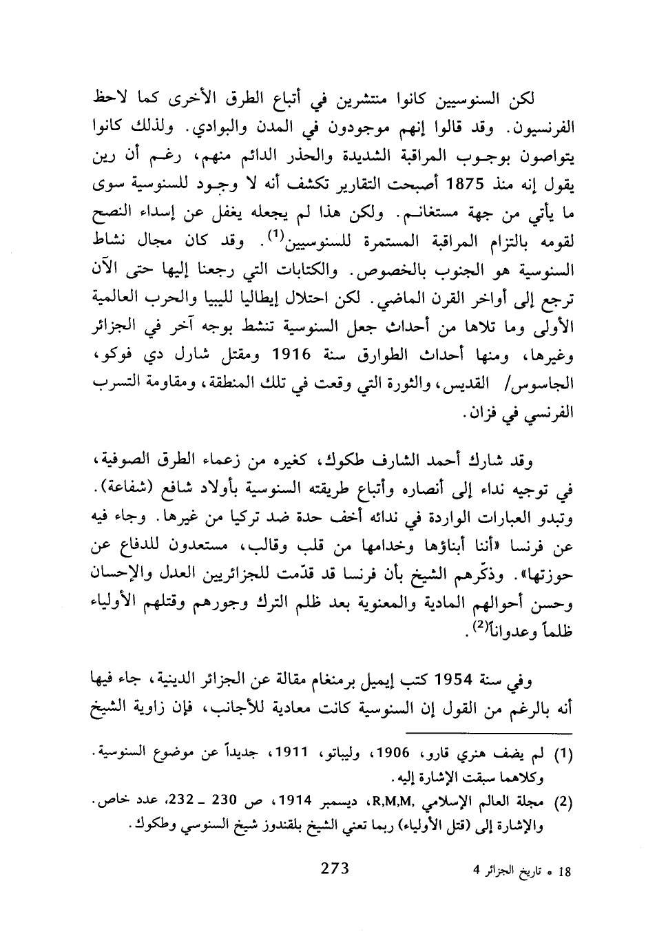 (¬1) لم يضف هنري قارو، 1906، وليباتو، 1911، جديدا عن موضوع السنوسية، وكلاهما سبقت الإشارة إليه.