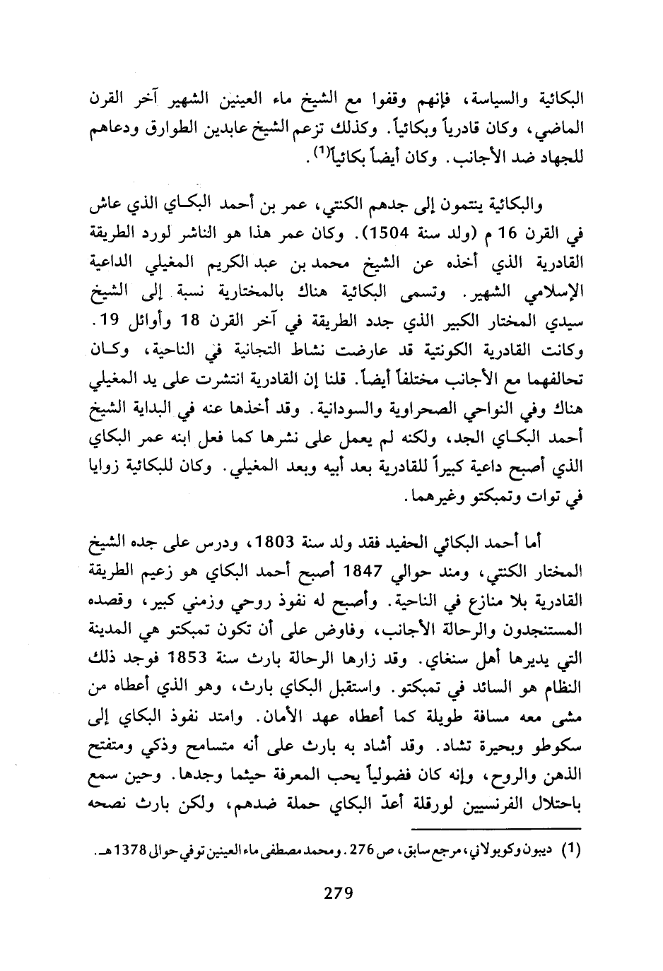 (¬1) ديبون وكويولاني، مرجع سابق، ص 276، ومحمد مصطفى ماء العينين توفي حوالى 1378 هـ.