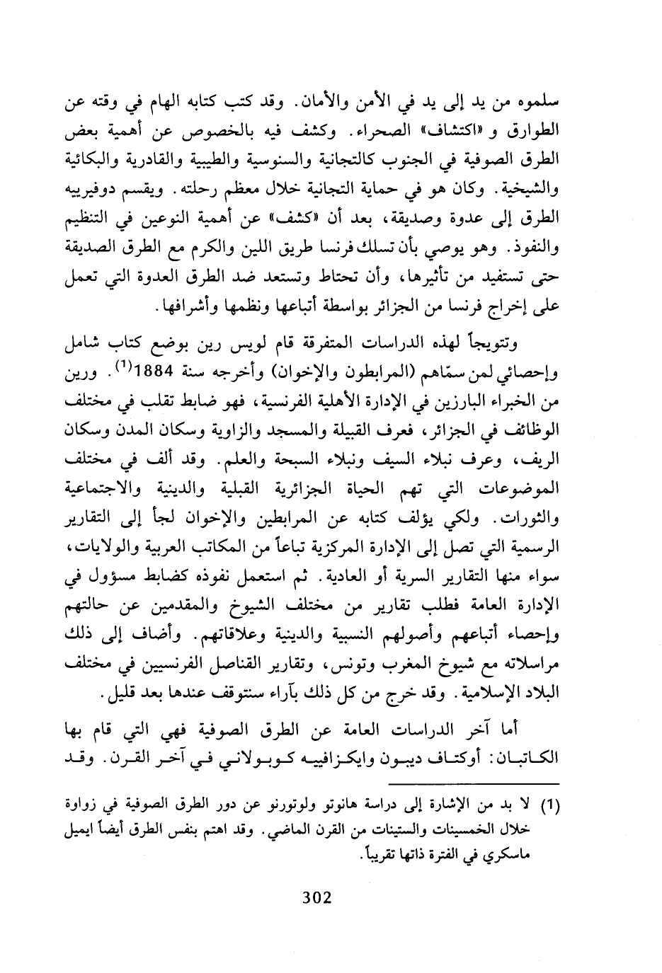 (¬1) لا بد من الإشارة إلى دراسة هانوتو ولوتورنو عن دور الطرق الصوفية في زواوة خلال الخمسينات والستينات من القرن الماضي، وقد اهتم بنفس الطرق أيضا ايميل ماسكري في الفترة ذاتها تقريبا.