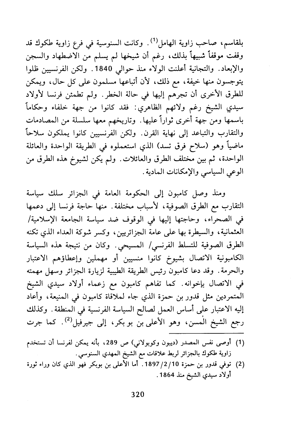 (¬1) أوصى نفس المصدر (ديبون وكوبولاني) ص 289، بأنه يمكن لفرنسا أن تستخدم زاوية طكوك بالجزائر لربط علاقات مع الشيخ المهدي السنوسي.