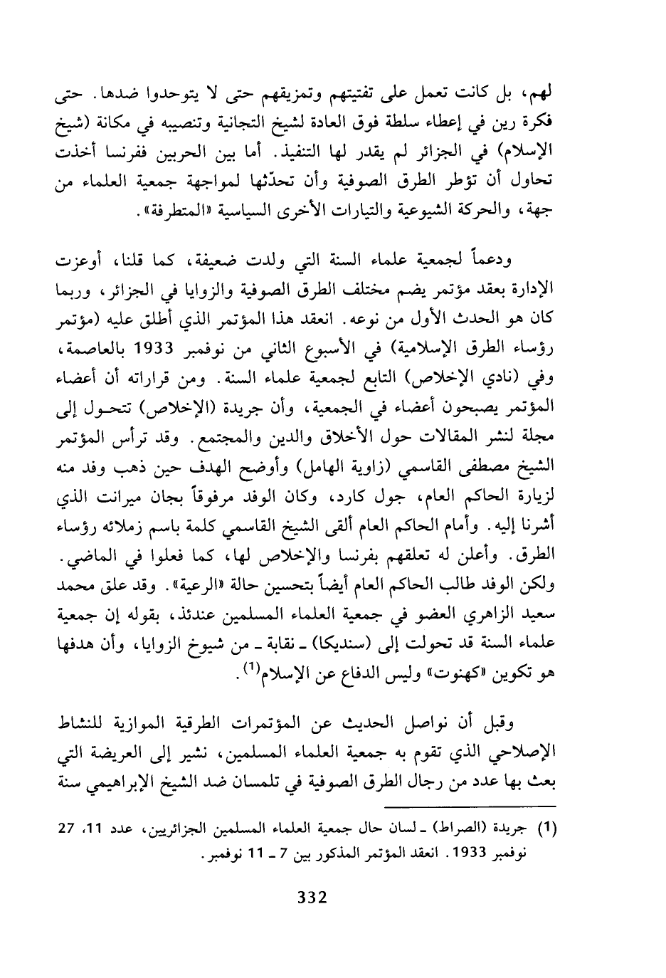 (¬1) جريدة (الصراط) - لسان حال جمعية العلماء المسلمين الجزائريين، عدد 11، 27 نوفمبر 1933، انعقد المؤتمر المذكور بين 7 - 11 نوفمبر.