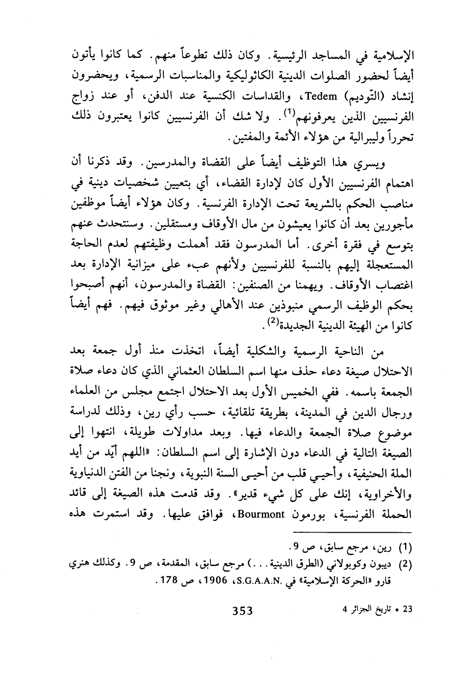 (¬2) ديبون وكوبولاني (الطرق الدينية ...) مرجع سابق، المقدمة، ص 9، وكذلك هنري قارو (الحركة الإسلامية) في S.G.A.A.N، 1906، ص 178.
