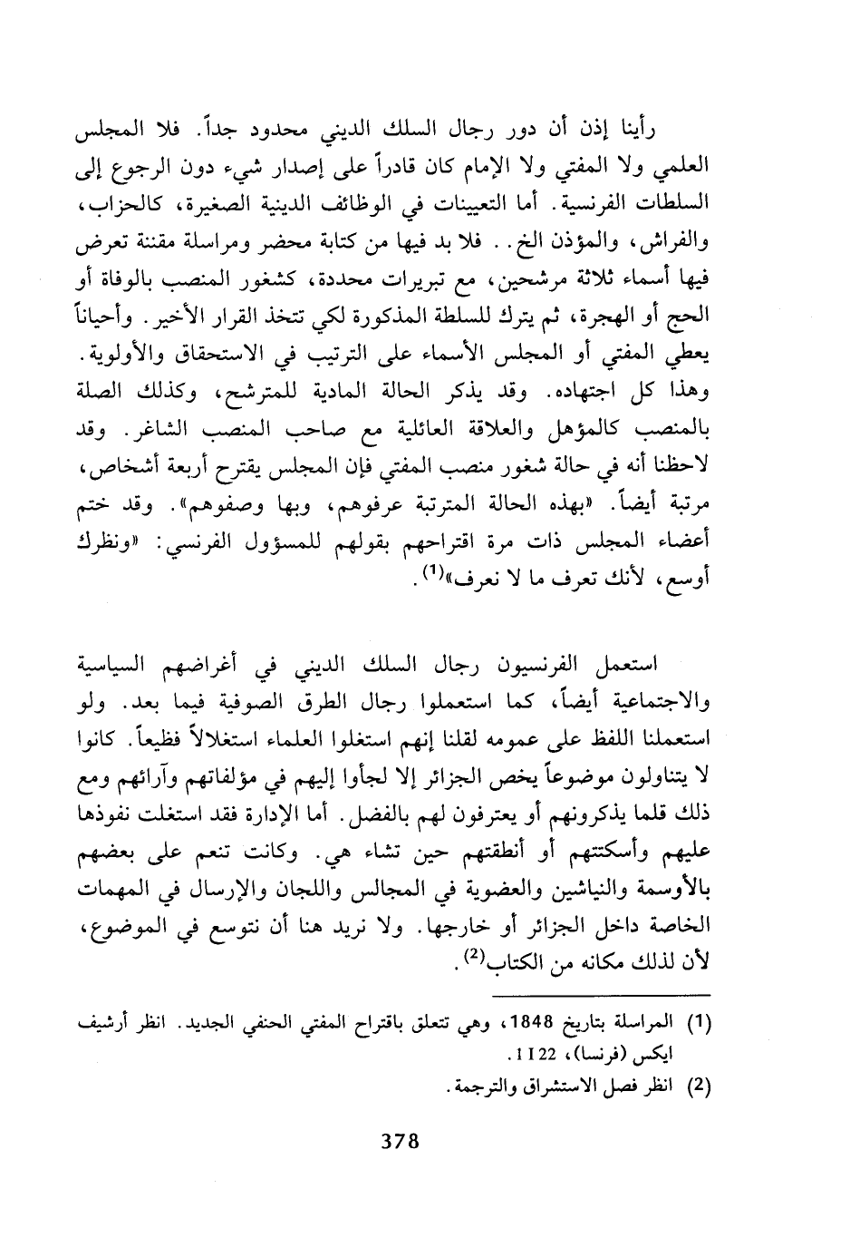 (¬1) المراسلة بتاريخ 1848، وهي تتعلق باقتراح المفتي الحنفي الجديد، انظر أرشيف ايكس (فرنسا)، 22 I 1.