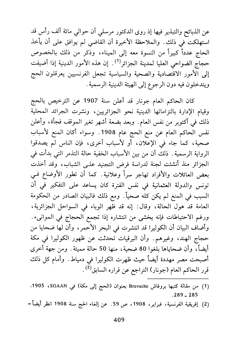 (¬2) إفريقية الفرنسية، فبراير، 1908، ص 59. عن إلغاء الحج سنة 1908 انظر أيضا =