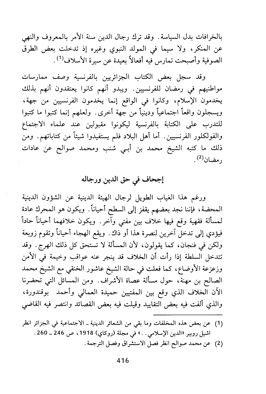 (¬1) عن بعض هذه المخلفات وما بقي من الشعائر الدينية - الاجتماعية في الجزائر انظر اشيل روبير (الدين الإسلامي ..) في مجلة (روكاي) 1918، ص 246 - 260.