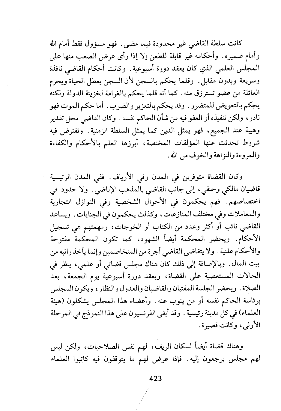 وهناك قضاة أيضا لسكان الريف، لهم نفس الصلاحيات، ولكن ليس لهم مجلس يرجعون إليه، فإذا عرض لهم ما يتوقفون فيه كاتبوا العلماء