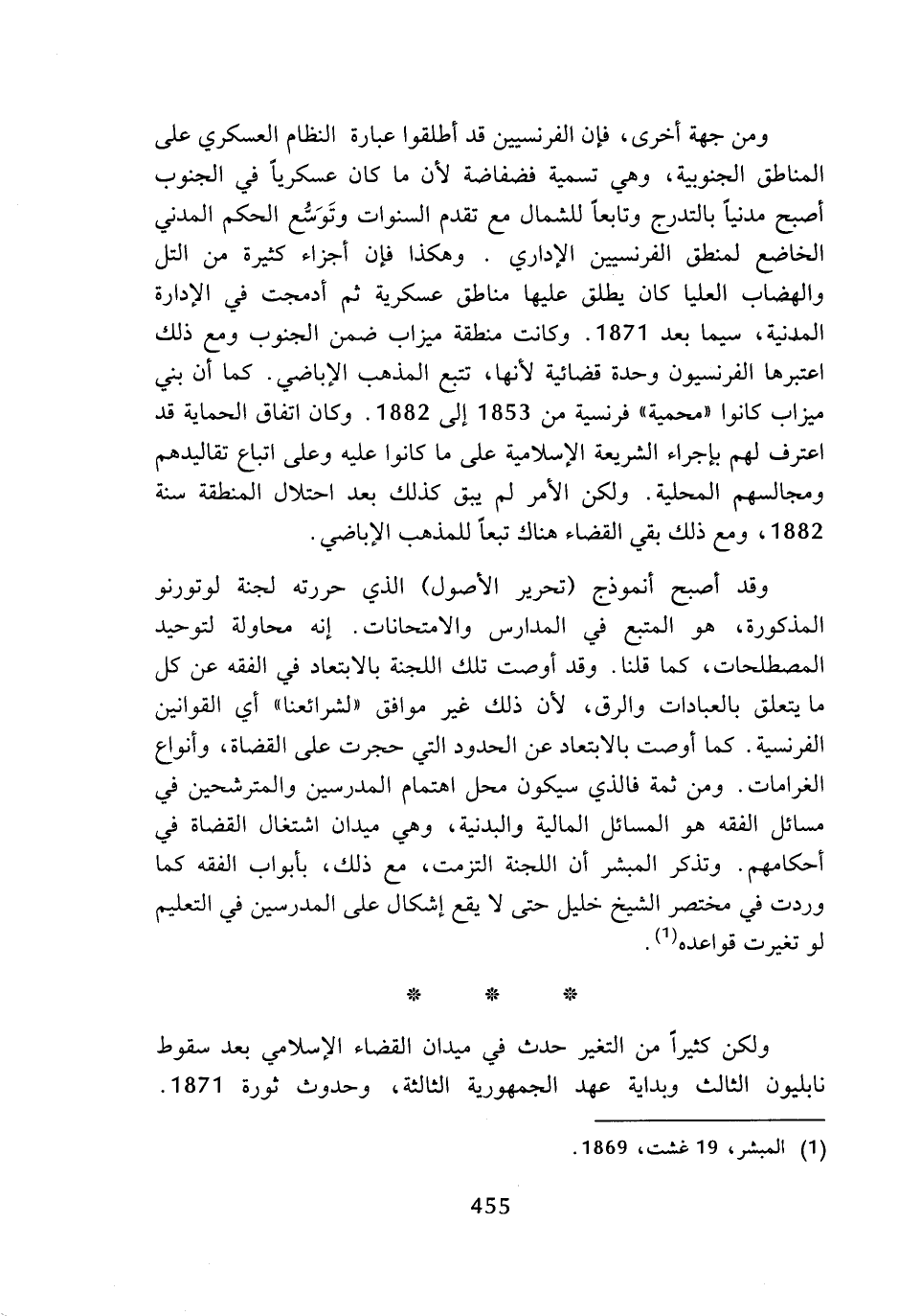ولكن كثيرا من التغير حدث في ميدان القضاء الإسلامي بعد سقوط نابليون الثالث وبداية عهد الجمهورية الثالثة، وحدوث ثورة 1871.