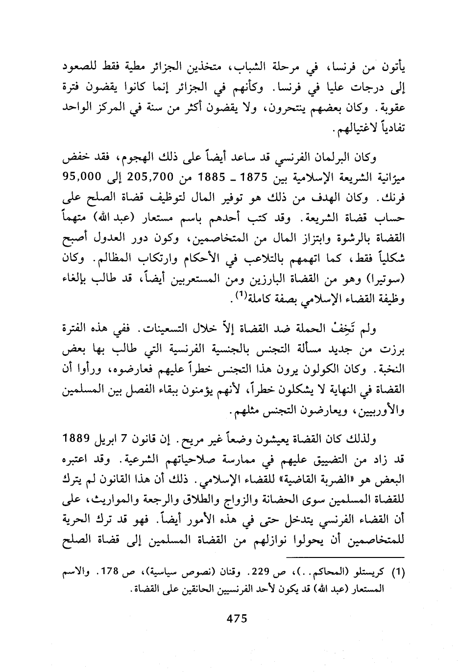 (¬1) كريستلو (المحاكم ..). ص 229. وقنان (نصوص سياسية)، ص 178، والاسم المستعار (عبد الله) قد يكون لأحد الفرنسيين الحانقين على القضاة.