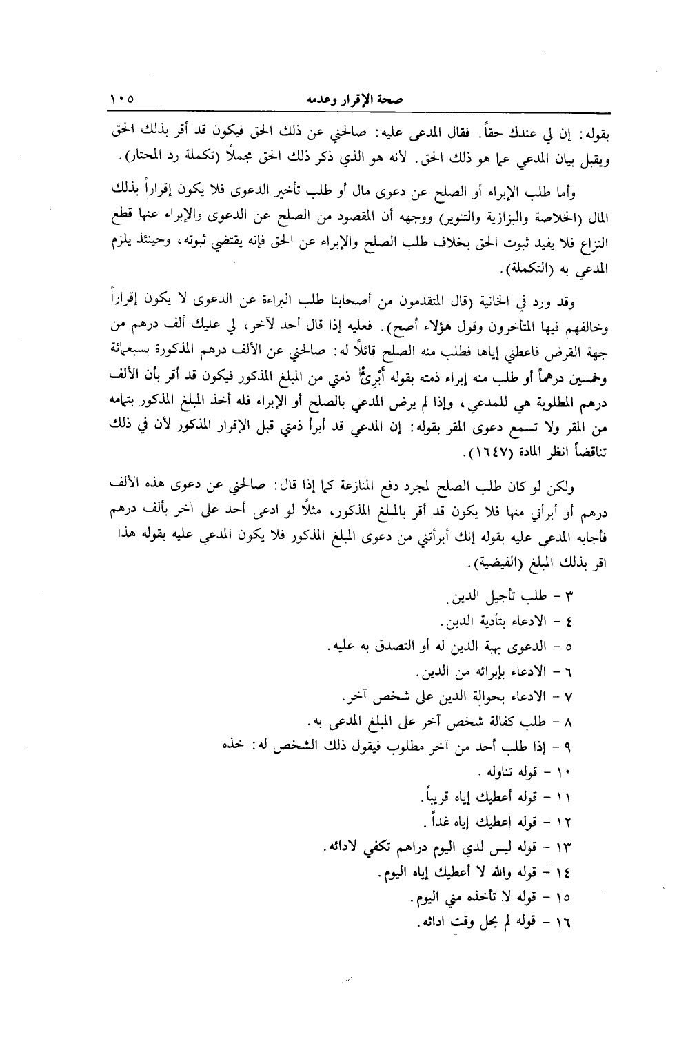 وَلَكِنْ لَوْ كَانَ طَلَبُ الصُّلْحِ لِمُجَرَّدِ دَفْعِ الْمُنَازَعَةِ كَمَا إذَا قَالَ: صَالِحْنِي عَنْ دَعْوَى هَذِهِ الْأَلْفِ دِرْهَمٍ أَوْ أَبْرِئْنِي مِنْهَا فَلَا يَكُونُ قَدْ أَقَرَّ بِالْمَبْلَغِ الْمَذْكُورِ، مَثَلًا لَوْ ادَّعَى أَحَدٌ عَلَى آخَرَ بِأَلْفِ دِرْهَمٍ فَأَجَابَهُ الْمُدَّعَى عَلَيْهِ بِقَوْلِهِ: إنَّك أَبْرَأْتَنِي مِنْ دَعْوَى الْمَبْلَغِ الْمَذْكُورِ فَلَا يَكُونُ الْمُدَّعَى عَلَيْهِ بِقَوْلِهِ هَذَا أَقَرَّ بِذَلِكَ الْمَبْلَغِ (الْفَيْضِيَّةُ) .
