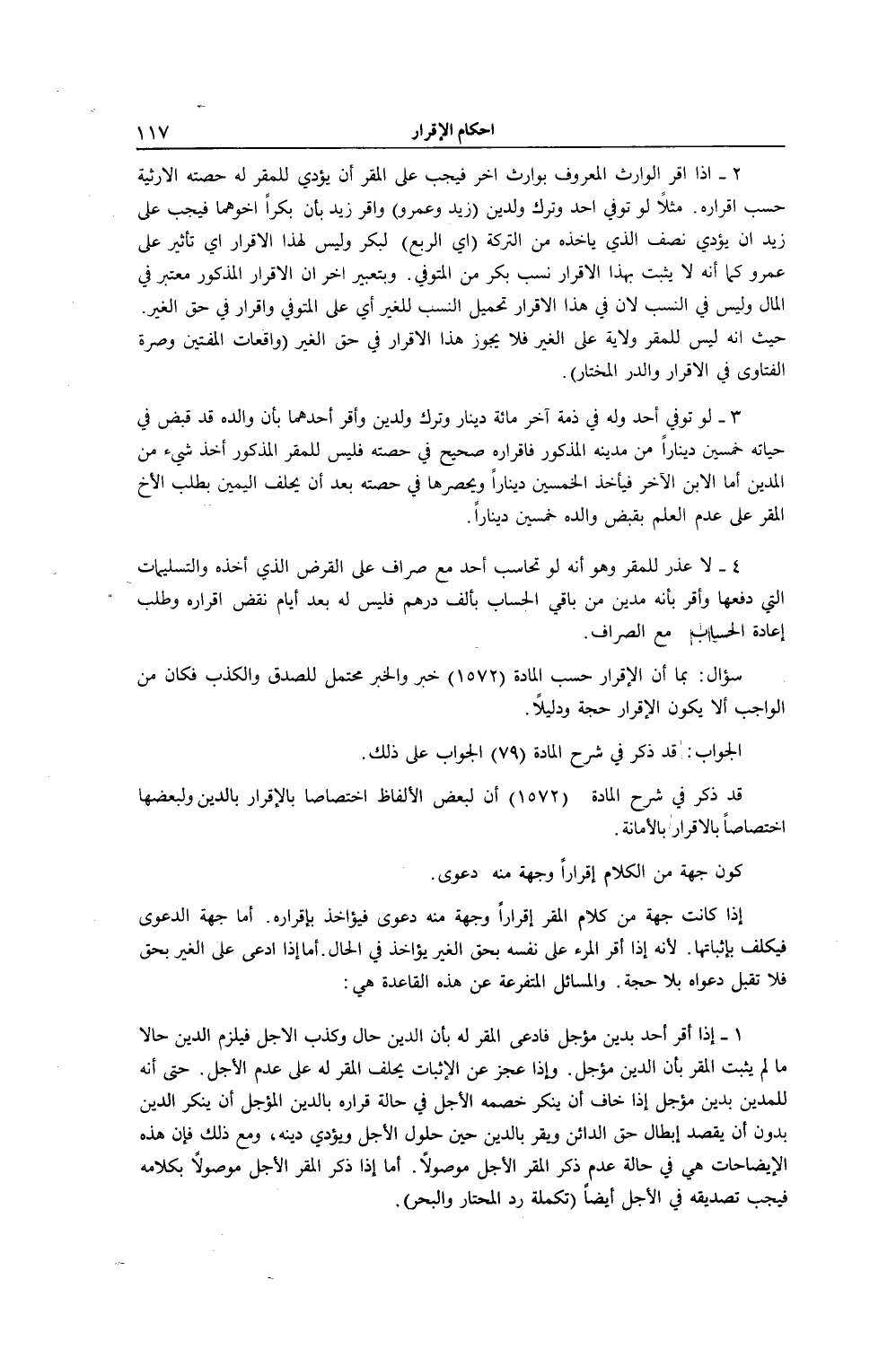 حَتَّى إنَّهُ لِلْمَدِينِ بِدَيْنٍ مُؤَجَّلٍ إذَا خَافَ أَنْ يُنْكِرَ خَصْمُهُ الْأَجَلَ فِي حَالَةِ قَرَارِهِ بِالدَّيْنِ الْمُؤَجَّلِ أَنْ يُنْكِرَ الدَّيْنَ بِدُونِ أَنْ يَقْصِدَ إبْطَالَ حَقِّ الدَّائِنِ، وَيُقِرَّ بِالدَّيْنِ حِينَ حُلُولِ الْأَجَلِ، وَيُؤَدِّيَ دَيْنَهُ، وَمَعَ ذَلِكَ فَإِنَّ هَذِهِ الْإِيضَاحَاتِ هِيَ فِي حَالَةِ عَدَمِ ذِكْرِ الْمُقِرِّ الْأَجَلَ مَوْصُولًا.