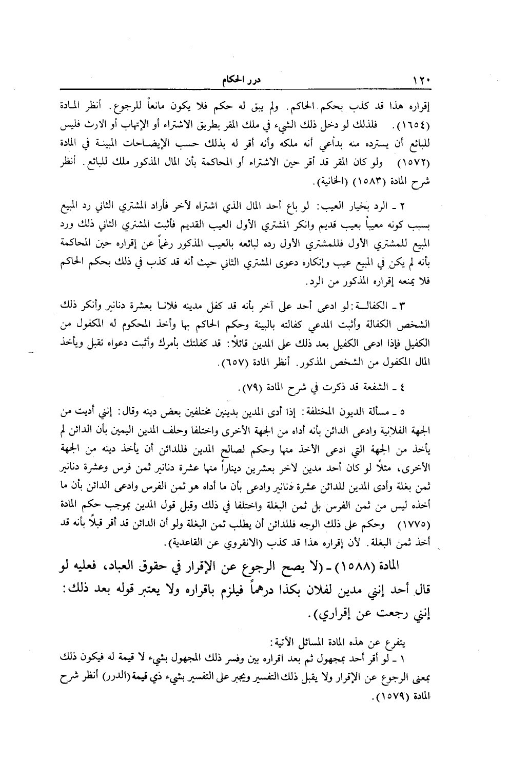[ (الْمَادَّةُ 1588) لَا يَصِحُّ الرُّجُوعُ عَنْ الْإِقْرَارِ فِي حُقُوقِ الْعِبَادِ.]