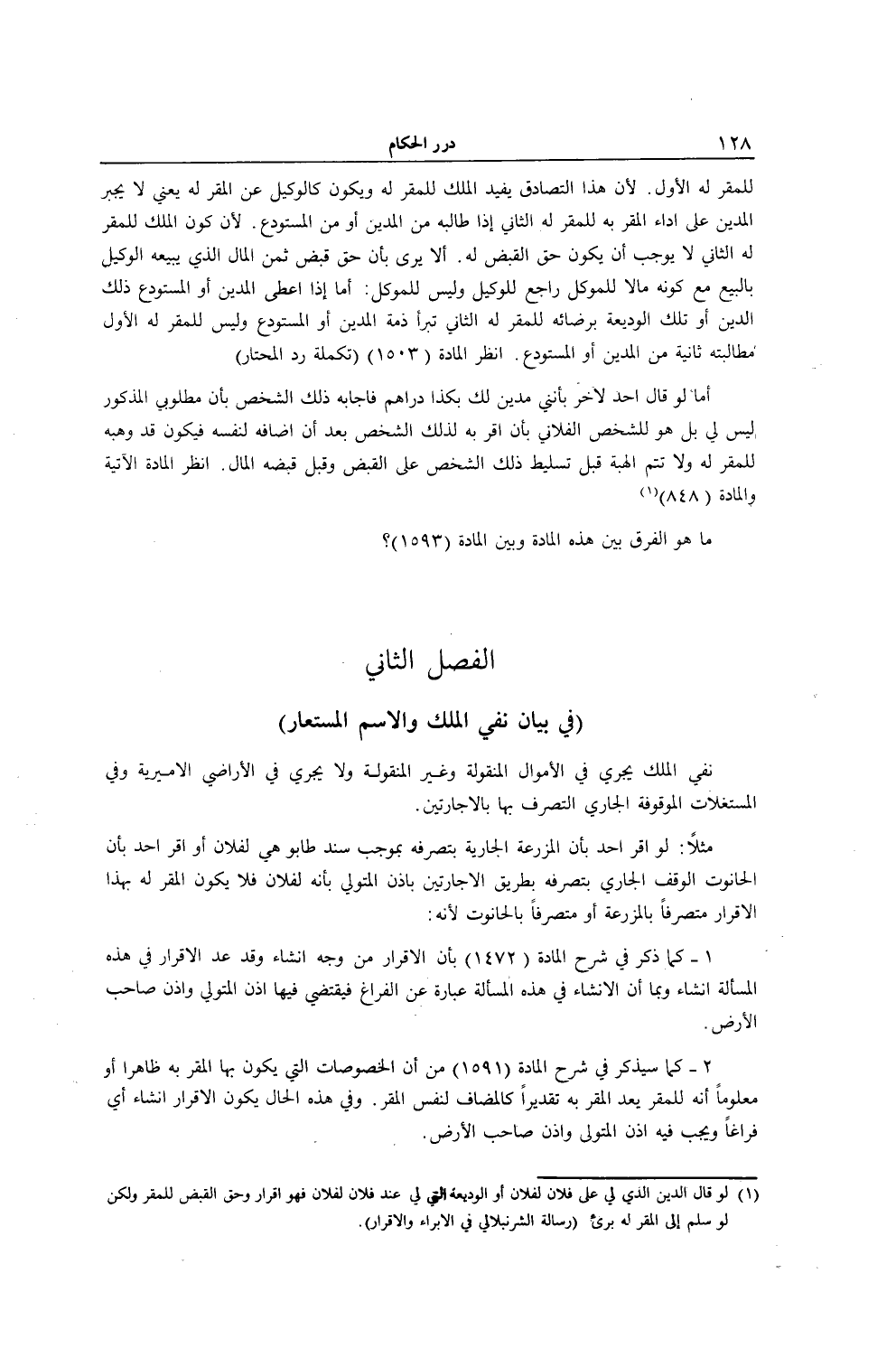 اُنْظُرْ الْمَادَّةَ الْآتِيَةَ وَالْمَادَّةَ (848) مَا هُوَ الْفَرْقُ بَيْنَ هَذِهِ الْمَادَّةِ وَبَيْنَ الْمَادَّةِ (1593) ؟ .
