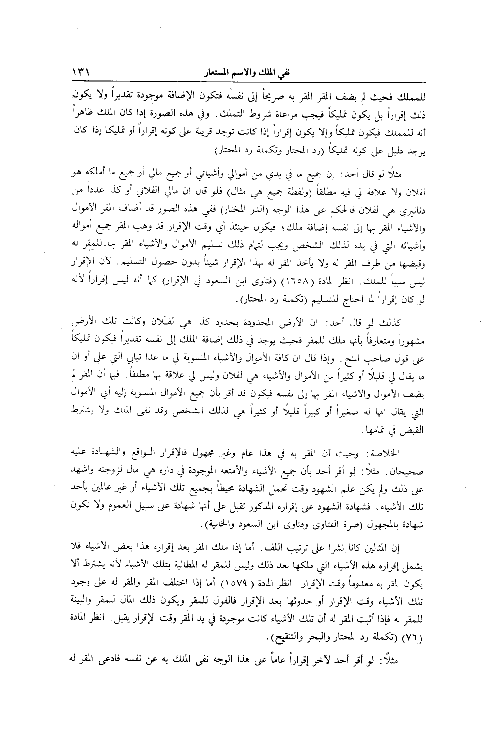 اُنْظُرْ الْمَادَّةَ (76) (تَكْمِلَةُ رَدِّ الْمُحْتَارِ وَالْبَحْرُ وَالتَّنْقِيحُ) .