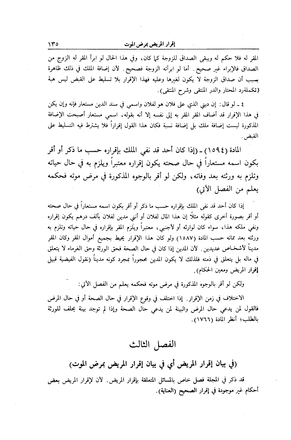 ِ) قَدْ ذُكِرَ فِي الْمَجَلَّةِ فَصْلٌ خَاصٌّ بِالْمَسَائِلِ الْمُتَعَلِّقَةِ بِإِقْرَارِ الْمَرِيضِ.