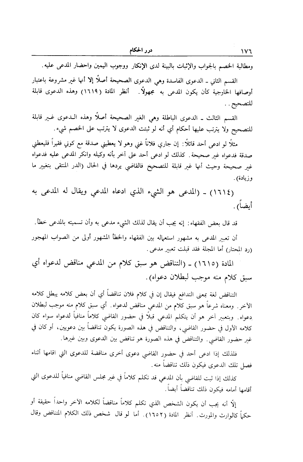 [ (الْمَادَّةُ 1614) الْمُدَّعَى هُوَ الشَّيْء الَّذِي ادَّعَاهُ الْمُدَّعِي]