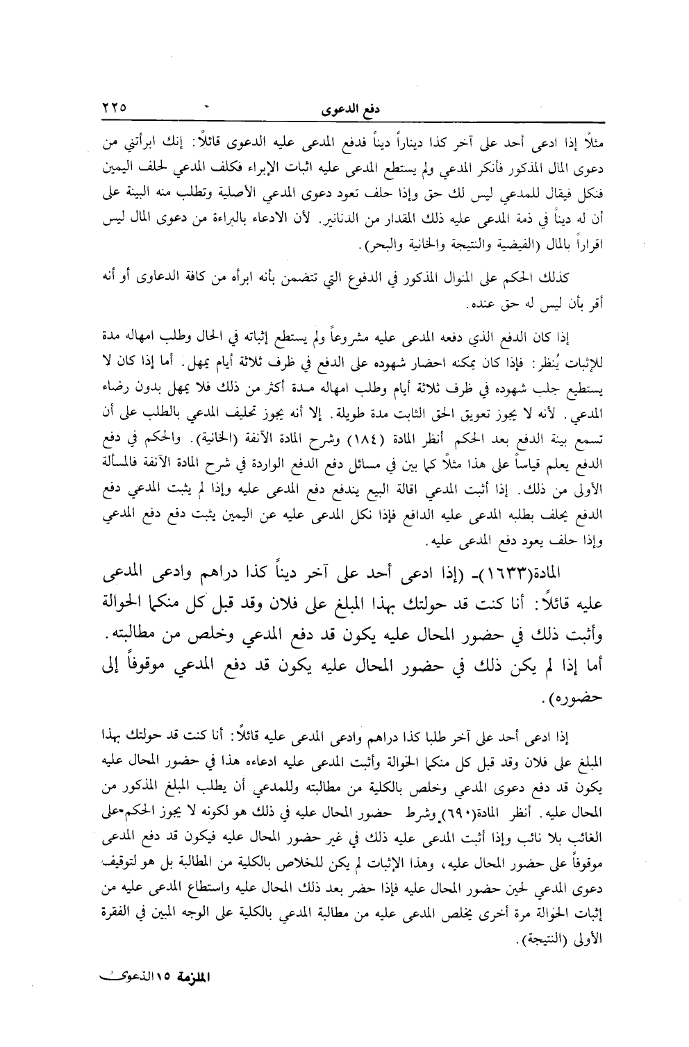 [ (الْمَادَّةُ 1633) إذَا ادَّعَى أَحَدٌ عَلَى آخَرَ دَيْنًا كَذَا دَرَاهِمَ بِهَذَا الْمَبْلَغِ عَلَى فُلَانٍ]
