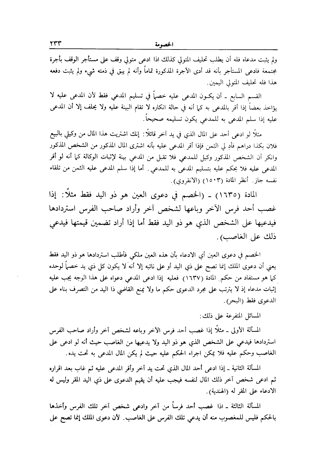 [ (الْمَادَّةُ 1635) الْخَصْمُ فِي دَعْوَى الْعَيْنِ]