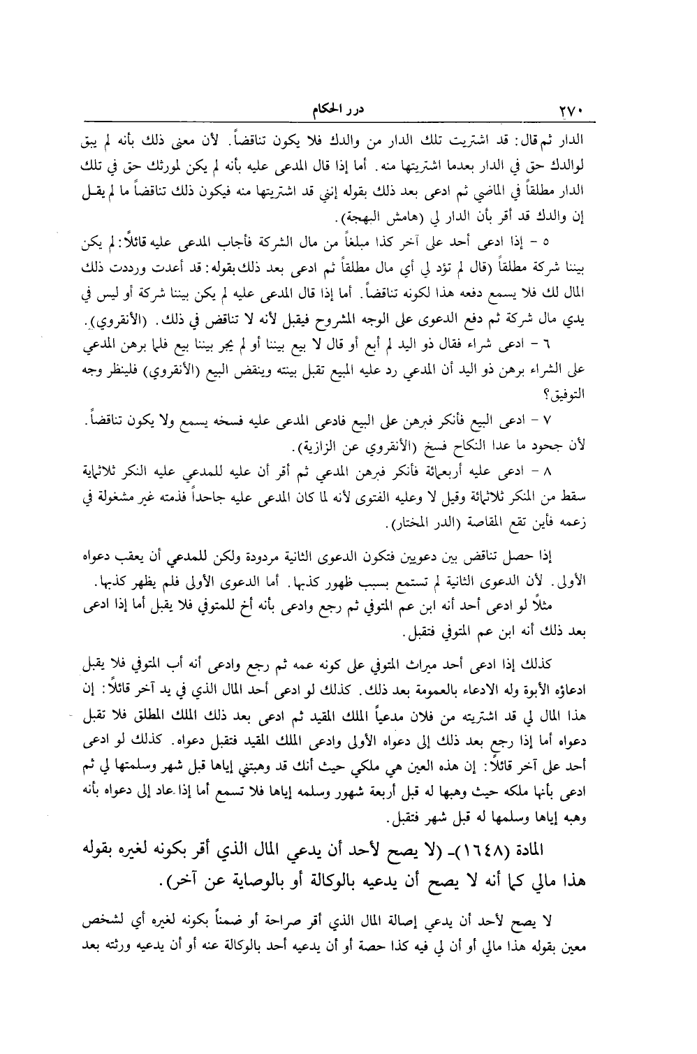 [ (الْمَادَّةُ 1648) لَا يَصِحُّ لِأَحَدٍ أَنْ يَدَّعِيَ الْمَالَ الَّذِي أَقَرَّ بِكَوْنِهِ لِغَيْرِهِ]