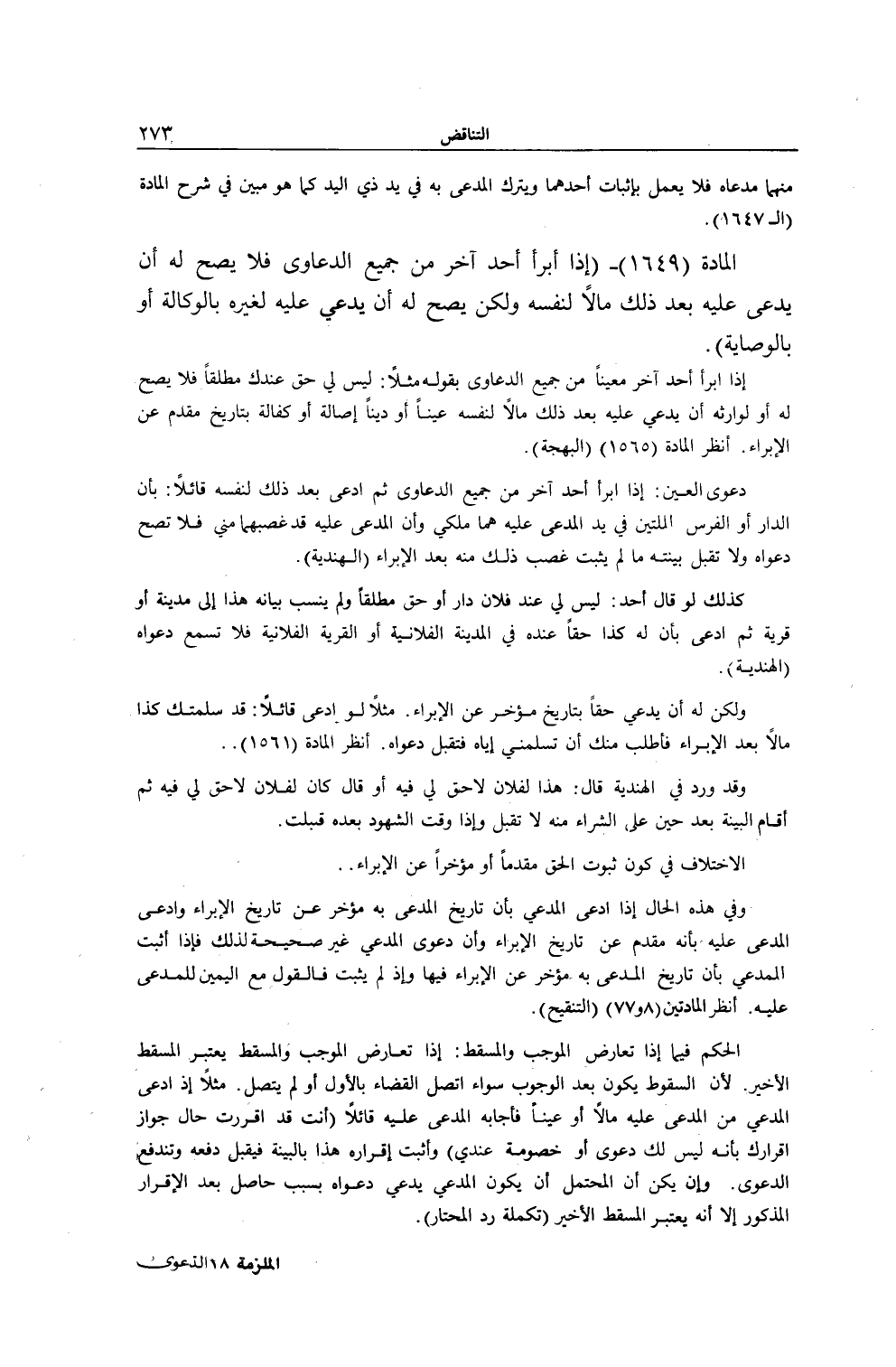[ (الْمَادَّةُ 1649) إذَا أَبْرَأَ أَحَدٌ آخَرَ مِنْ جَمِيعِ الدَّعَاوَى]